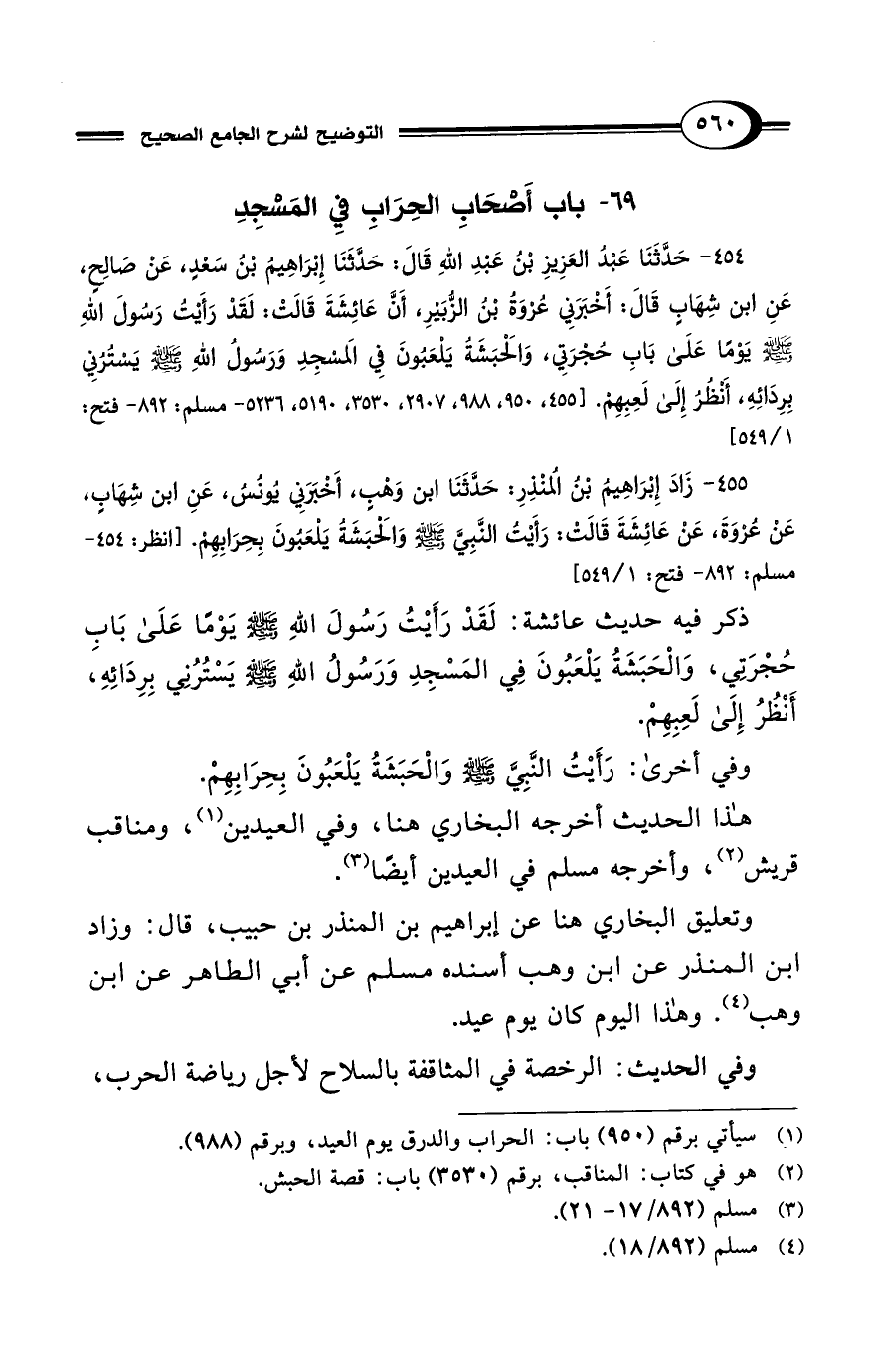 (¬1) سيأتي برقم (950) باب: الحراب والدرق يوم العيد، وبرقم (988).
