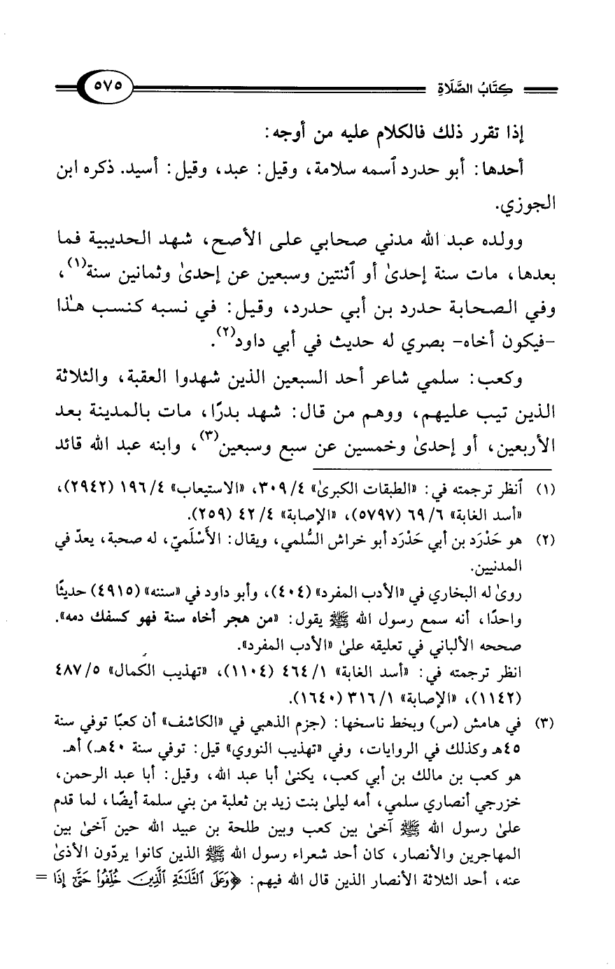 (¬3) في هامش (س) وبخط ناسخها: (جزم الذهبي في "الكاشف" أن كعبًا توفي سنة 45 هـ وكذلك في الروايات، وفي "تهذيب النووي" قيل: توفي سنة 40 هـ.) أهـ.