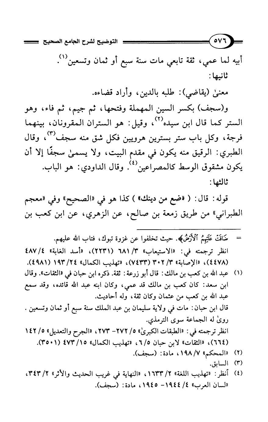 (¬1) عبد الله بن كعب بن مالك: قال أبو زرعة: ثقة. ذكره ابن حبان في "الثقات". وقال ابن سعد: كان كعب بن مالك قد عمي، وكان ابنه عبد الله قائده، وقد سمع عبد الله بن كعب من عثمان وكان ثقة، وله أحاديث.