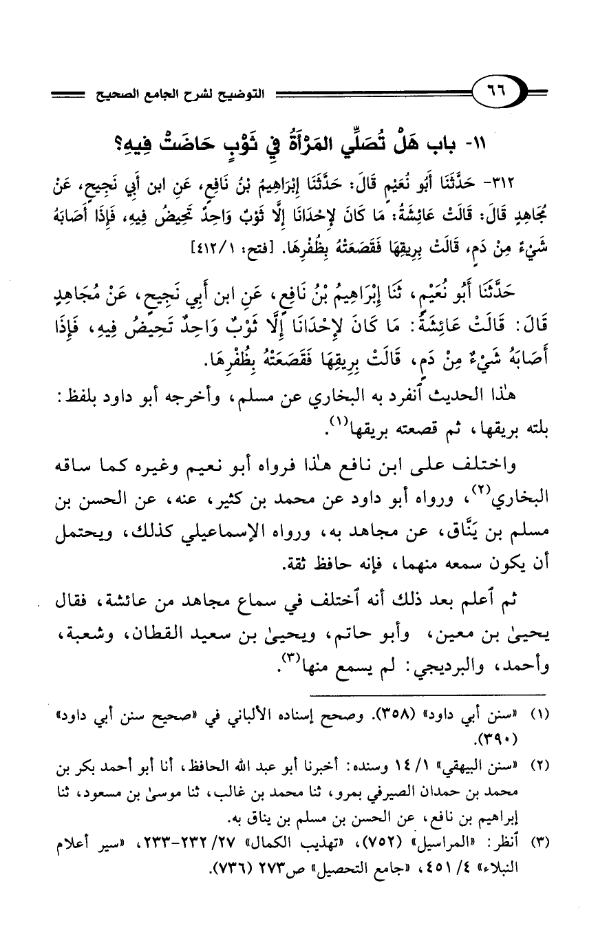 11 - باب هَلْ تُصَلِّي المَرْأَةُ فِي ثَوْبٍ حَاضَتْ فِيهِ؟