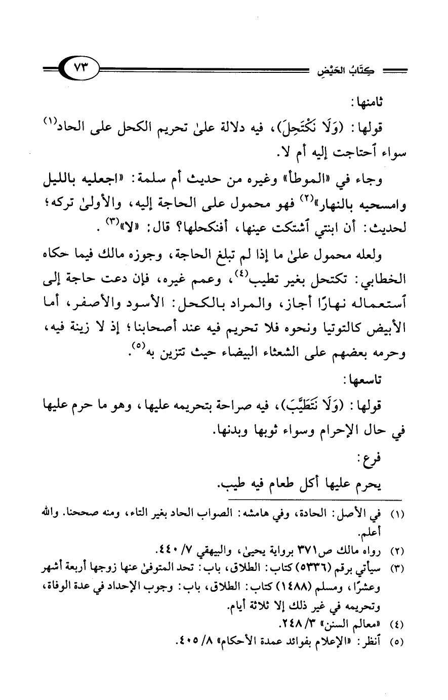(¬3) سيأتي برقم (5336) كتاب: الطلاق، باب: تحد المتوفي عنها زوجها أربعة أشهر وعشرًا، ومسلم (1488) كتاب: الطلاق، باب: وجوب الإحداد في عدة الوفاة، وتحريمه في غير ذلك إلا ثلاثة أيام.