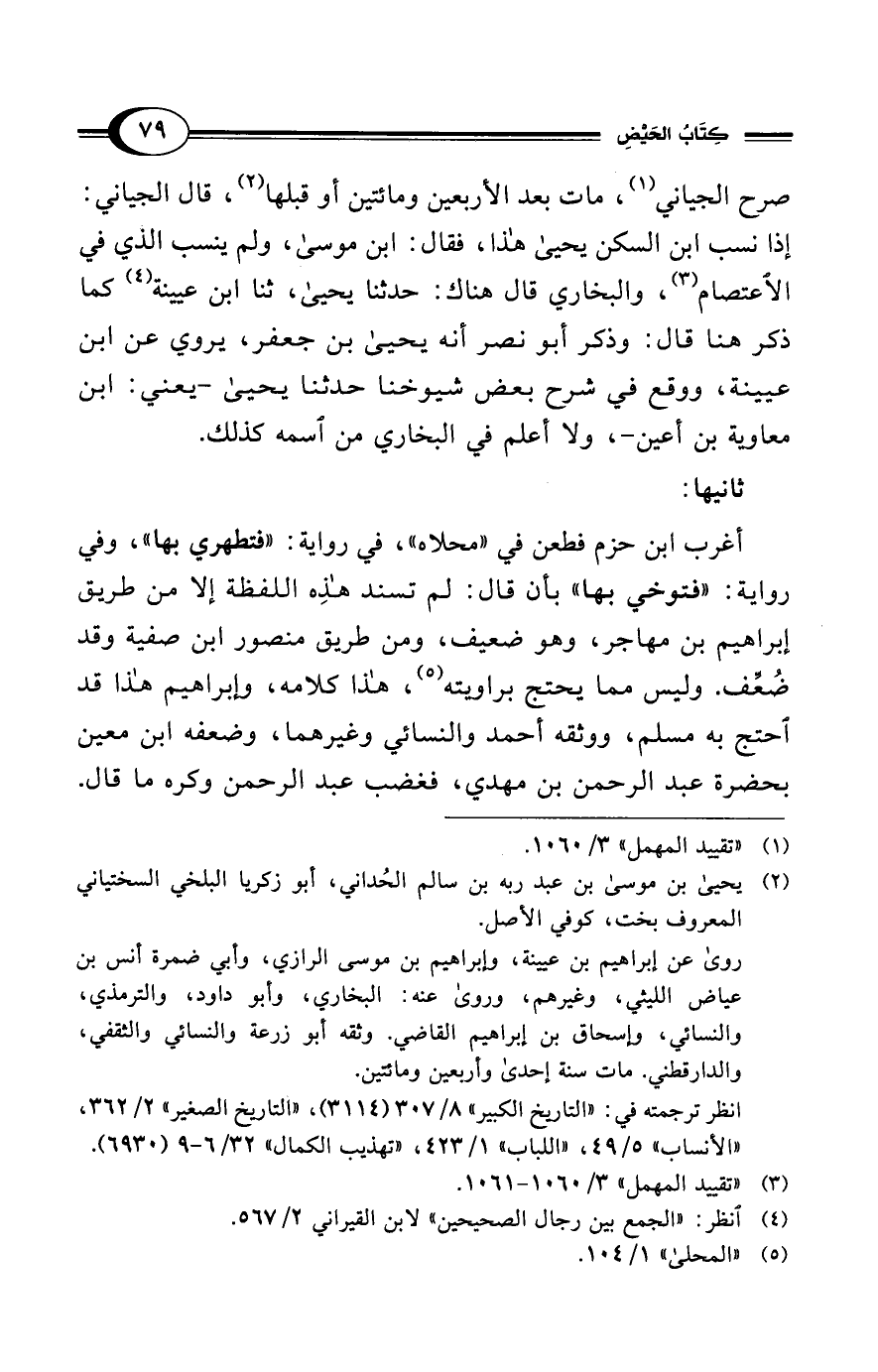 أغرب ابن حزم فطعن في "محلاه"، في رواية: "فتطهري بها"، وفي رواية: "فتوخي بها" بأن قال: لم تسند هذِه اللفظة إلا من طريق إبراهيم بن مهاجر، وهو ضعيف، ومن طريق منصور ابن صفية وقد ضُعِّف. وليس مما يحتج براويته (¬5)، هذا كلامه، وإبراهيم هذا قد احتج به مسلم، ووثقه أحمد والنسائي وغيرهما، وضعفه ابن معين بحضرة عبد الرحمن بن مهدي، فغضب عبد الرحمن وكره ما قال.