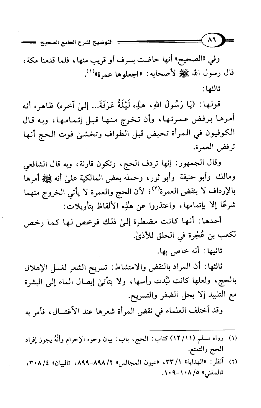 (¬1) رواه مسلم (11/ 12) كتاب: الحج، باب: بيان وجوه الإحرام وأنَّهُ يجوز إفراد الحج والتمتع.
