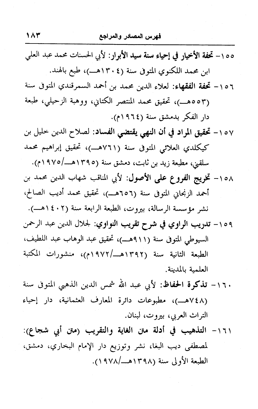 ١٥٦ - تحفة الفقهاء: لعلاء الدين محمد بن أحمد السمرقندي المتوفى سنة (٥٥٣ هـ)، تحقيق محمد المنتصر الكتاني، ووهبة الزحيلي، طبعة دار الفكر بدمشق سنة (١٩٦٤ م).