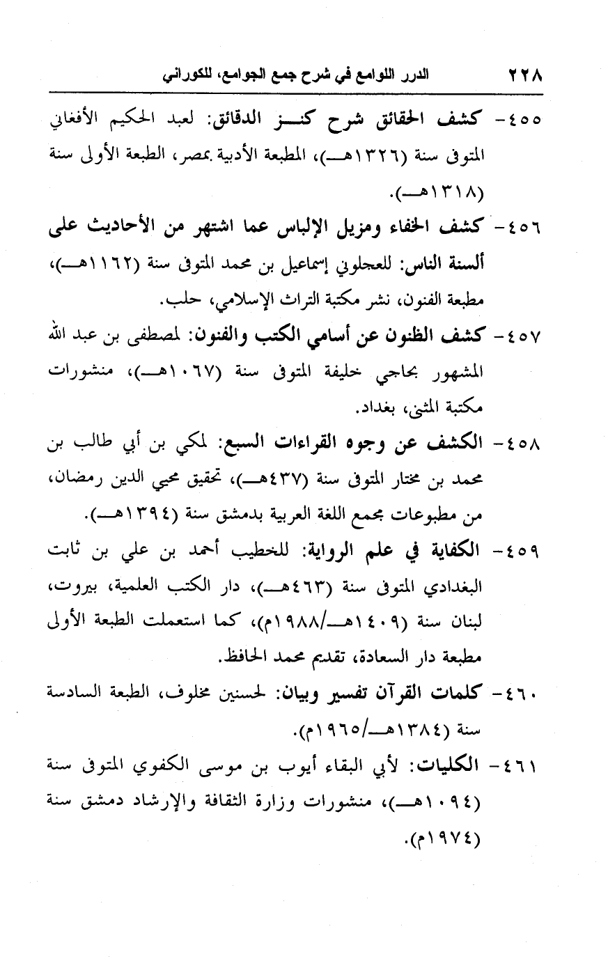 ٤٦١ - الكليات: لأبي البقاء أيوب بن موسى الكفوي المتوفى سنة (١٠٩٤ هـ)، منشورات وزارة الثقافة والإرشاد دمشق سنة (١٩٧٤ م).