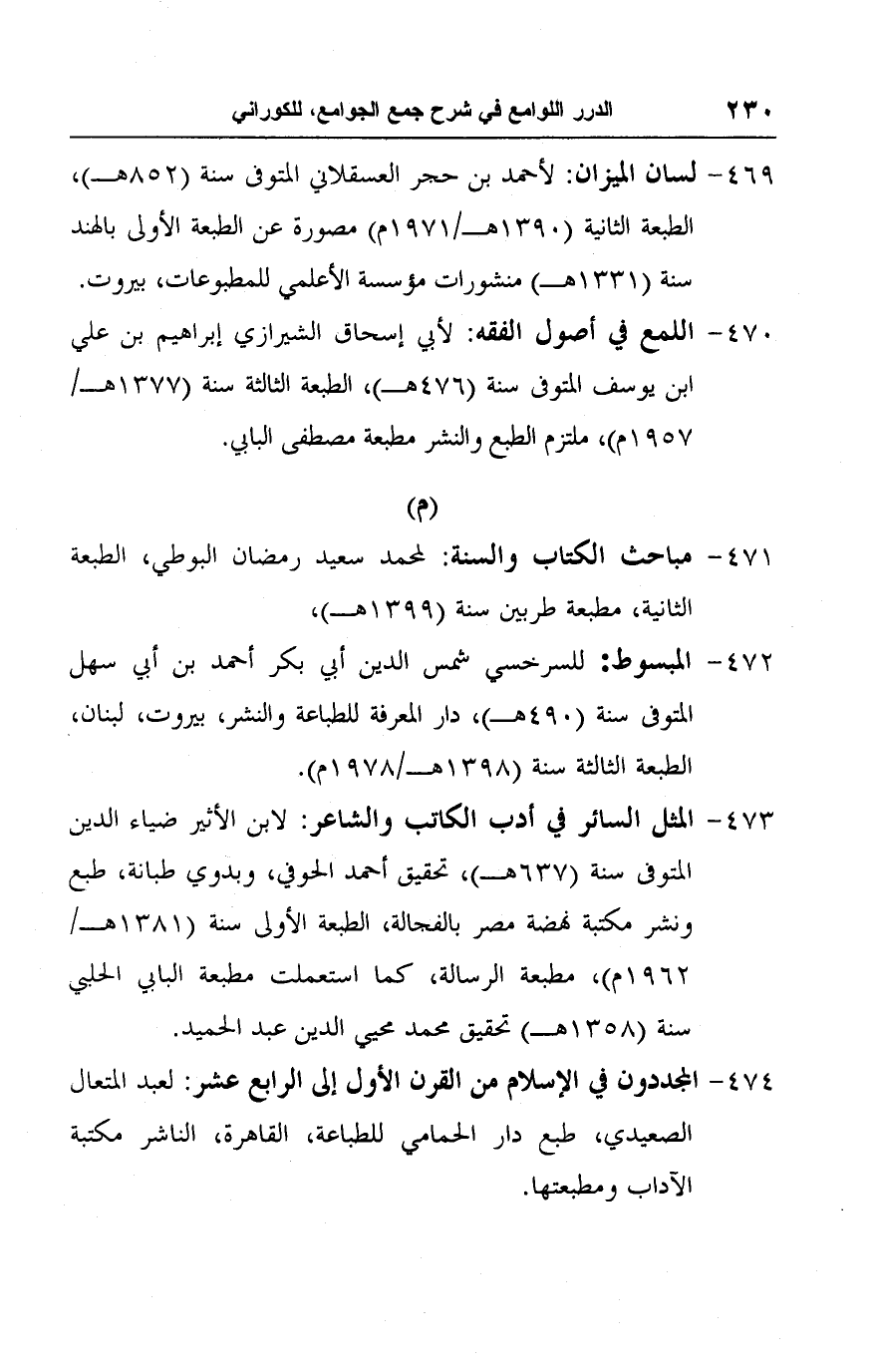 ٤٧٣ - المثل السائر في أدب الكاتب والشاعر: لابن الأثير ضياء الدين المتوفى سنة (٦٣٧ هـ)، تحقيق أحمد الحوفي، وبدوي طبانة، طبع ونشر مكتبة فضة مصر بالفجالة، الطبعة الأولى سنة (١٣٨١ هـ/ ١٩٦٢ م)، مطبعة الرسالة، كما استعملت مطبعة البابي الحلبي سنة (١٣٥٨ هـ) تحقيق محمد محيي الدين عبد الحميد.