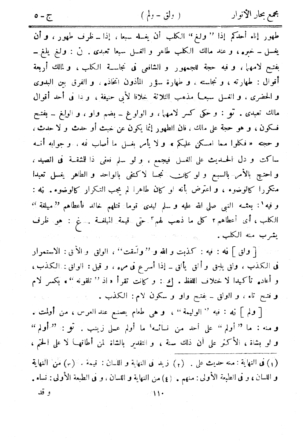 طهور إناء أحدكم إذا "ولغ" الكلب أن يغسله سبعا، إذا - ظرف طهور، وأن يغسل - خبره، وعند مالك الكلب طاهر والغسل سبعًا تعبدي. ن: ولغ يلغ - بفتح لامهما، وفي حجة للجمهور والشافعي في نجاسة الكلب، ولمالك أربعة أقوال: طهارته، ونجاسته، وطهارة سؤر المأذون اتخاذه، والفرق بين البدوي والحضري، والغسل سبعًا مذهب الثلاثة خلافًا لأبي حنيفة، وهذا في أحد أقوال مالك تعبدي. تو: وحكى كسر لامهما، والولوغ - بضم واو، والولغ - بفتح فسكون، وهو حجة على مالك، فإن الطهور إنما يكون عن خبث أو حدث ولا حدث، وحجته "فكلوا مما أمكن عليكم" ولا يأمر بغسل ما أصاب فمه، وجوابه أنه ساكت ودل الحديث على الغسل فيجمع، ولو سلم فعفى ذا للمشقة في الصيد، واحتج بالأمر بالسبع ولو كان نجسًا لاكتفى بالواحد والطاهر يغسل تعبدًا متكررًا كالوضوء، واعترض بأنه لو كان طاهرًا لم يجب التكرار كالوضوء. نه: وفيه: بعثه النبي صلى الله عليه وسلم ليدى قومًا قتلهم خالد فأعطاهم "ميلغة" الكلب، أي أعطاهم كل ما ذهب لهم حتى قيمة الميلغة. غ: هو ظرف يشرب منه الكلب.