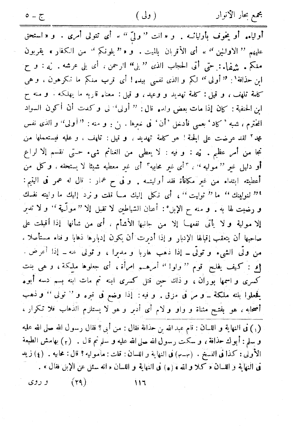 أولياءه أو يخوف بأوليائه. و"أنت "ولي"" أي تتولى أمري. و"استحق عليهم "الأولين"" أي الأقربان بالميت. و"يلونكم" من الكفار" يقربون منكم. شفا: حتى اتى الحجاب الذي "يلي" الرحمن، أي يلي عرشه. نه: وح ابن حذافة: "أولى" لكم والذي نفسي بيده! أي قرب منكم ما تكرهونن هي كلمة تلهف، وقيل: كلمة تهديد ووعيد، وقيل: معناه قاربه ما يهلكه، ومنه ح ابن الحنفية: كان إذا مات بعض ولده قال: "أولى" لي وكدت أن أكون السواد المحترم، شبه "كاد" بعسى فادخل "أن" في خبرها. ن: ومنه: "أولى" والي نفس محمد لقد عرضت علي الجنة! هو كلمة تهديد، وقيل: تلهف، وعليه فيستعملها من نجا من أمر عظيم. نه: وفيه: لا يعطي من الغنائم شيء حتى نقسم إلا لراع أو دليل غير "موليه"، أي غير محابيه أي غير معطيه شيئًا لا يستحقه، وكل من أعطيته ابتداء من غير مكافأة فقد أوليته. وفي ح عمار: قال له عمر في اليتيم: "لنولينك" ما "توليت"، أي نكل غليك ما قلت ونرد غليك ما وليته نفسك ورضيت لها به. ومنه ح الإبل: أعنان الشياطين لا تقبل إلا "مولية" ولا تدبر إلا مولية ولا يأتي نفعها إلا من جانبها الأشام، أي من شأنها إذا أقبلت على صاحبها أن يتعقب إقبالها الإدبار وإذا أدبرت أن يكون غدبارها ذهابًا وفناء مستأصلًا. من ولى الشيء وتولى - إذا ذهب هاربًا ومدبرًا، وتولى عنه - إذا أعرض. ك: كيف يفلح قوم "ولوا" أمرهم امرأة، أي جعلوها ملكة، وهي بنت كسرى واسمها بوران، وذلك حين قتل كسرى ابنه ثم مات ابنه بسم دسه أبوه فجعلوا بنته ملة - ومر في مزق. وفيه: إذا وضع في قبره و"تولى" وذهب أصحابه، هو بفتح مثناة وواو ولام أي أدبر وهو لا يستلزم الذهاب فلا تكرار،