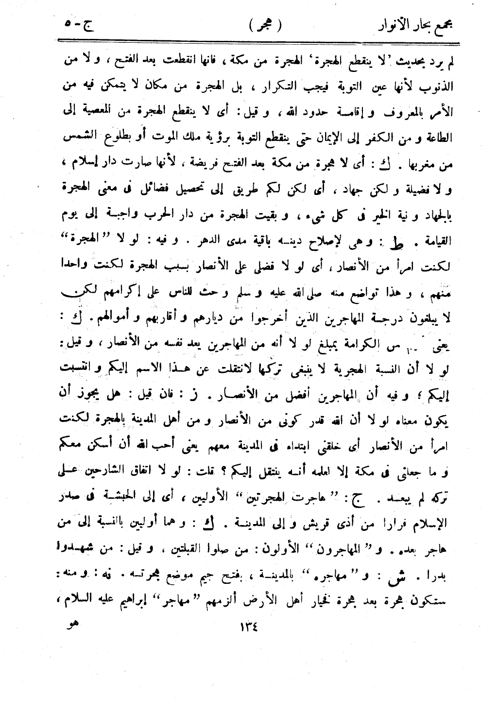 لم يرد بحديث "لا ينقطع الهجرة" الهجرة من مكة، فإنها انقطعت بعد الفتح، ولا من الذنوب لأنها عين التوبة فيجب التكرار، بل الهجرة من مكان لا يتمكن فيه من الأمر بالمعروف وإقامة حدود الله، وقيل: أي لا ينقطع الهجرة من المعصية إلى الطاعة ومن الكفر إلى الإيمان حتى ينقطع التوبة برؤية ملك الموت أو بطلوع الشمس من مغربها. ك: أي لا هجرة من مكة بعد الفتح فريضة، لأنها صارت دار إسلام، ولا فضيلة ولكن جهاد، أي لكن لكم طريق إلى تحصيل فضائل في معنى الهجرة بالجهاد ونية الخير في كل شيء، وبقيت الهجرة من دار الحرب واجبة إلى يوم القيامة. ط: وهي لإصلاح دينه باقية مدى الدهر. وفيه: لولا "الهجرة" لكنت امرأ من الأنصار، أي لولا فضلي على الأنصار بسبب الهجرة لكنت واحدًا منهم، وهذا تواضع منه صلى الله عليه وسلم وحث للناس على إكرامهم لكن لا يبلغون درجة المهاجرين الذين أخرجوا من ديارهم وأقاربهم وأموالهم. ك: يعني أنهم من الكرامة بمبلغ لولا أنه من المهاجرين يعد نفسه من الأنصار، وقيل: لولا أن النسبة الهجرية لا ينبغي ترها لانتقلت عن هذا الاسم إليكم وانتسبت إليكم، وفيه أن المهاجرين أفضل من الأنصار. ز: فإن قيل: هل يجوز أن يكون معناه لولا أن الله قدر كوني من الأنصار ومن أهل المدينة بالهجرة لكنت امرأ من الأنصار أي خلقني ابتداء في المدينة معهم يعني أحب الله أن أسكن معكم وما جعلني في مكة إلا لعلمه أنه ينتقل إليكم؟ قلت: لولا اتفاق الشارحين على تركه لم يبعد. ج: "هاجرت الهجرتين" الأوليين، أي إلى الحبشة في صدر الإسلام قرارًا من أذى قريش وإلى المدينة. ك: وهما أوليين بالنسبة إلى من هاجر بعده. و"المهاجرون" الأولون: من صلوا القبلتين، وقيل: من شهدوا بدرًا. ش: و"مهاجره" بالمدينة، بفتح جيم موضع هجرته. نه: ومنه: ستكون هجرة بعد هجرة فخيار أهل الأرض ألزمهم "مهاجر" إبراهيم عليه السلام،