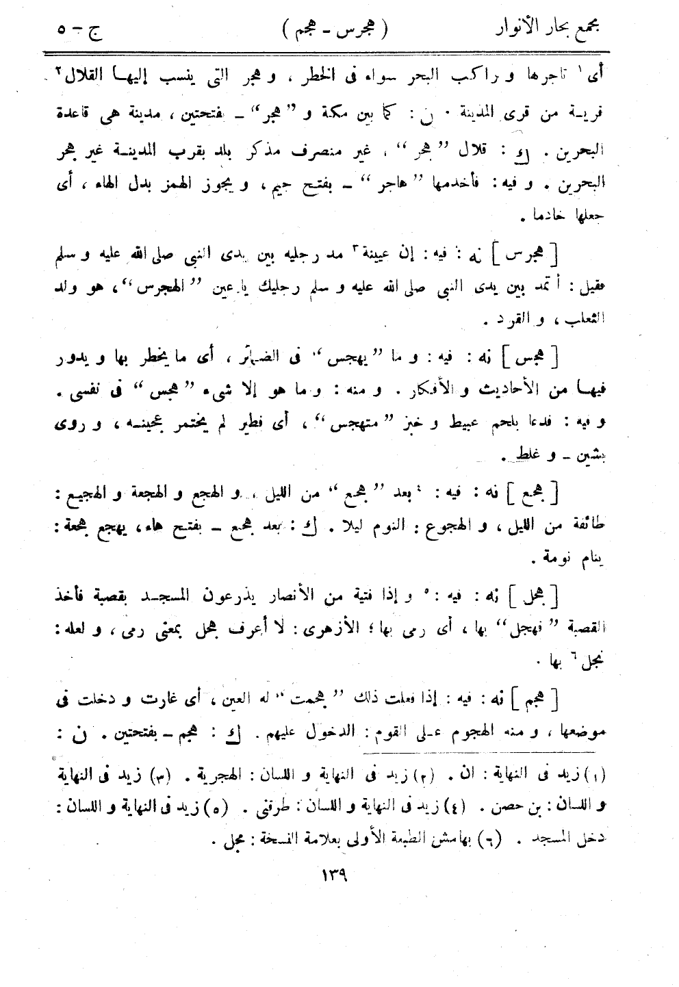 [هجل] نه: فيه: وإذا فتية من الأنصار يذرعون المسجد بقصبة فأخذ القصبة "فهجل" بها، أي رمى بها، الأزهري: لا أعرف هجل بمعنى رمى، ولعله: نجل بها.