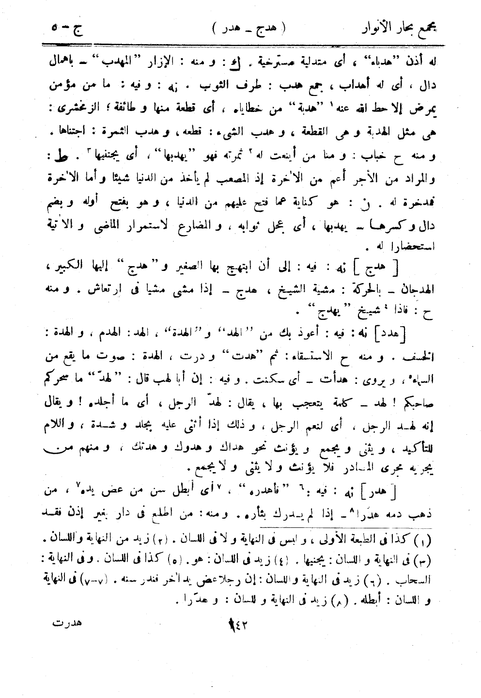 [هدد] نه: فيه: أعوذ بك من "الهد" و"الهدة"، الهد: الهدم، والهدة: الخسف. ومنه ح الاستسقاء: ثم "هدت" ودرت، الهدة: صوت ما يقع من السماء، ويروى: هدأت- أي سكنت. وفيه: إن أبا لهب قال: "لهد" ما سحرم صاحبكم! لهد - كلمة يتعجب بها، يقال: لهد الرجل، أي ما أجلده! ويقال إنه لهد الرجل، أي لنعم الرجل، وذلك إذا أثنى عليه بجلد وشدة، واللام للتأكيد، ويثنى ويجمع ويؤنث نحو هداك وهدوك وهدتك، ومنهم من يجريه مجرى المصادر فلا يؤنث ولا يثني ولا يجمع.