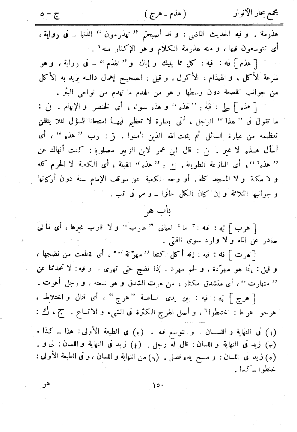 [هرج] نه: فيه: بين يدي الساعة "هرج"، أي قتال واختلاط، هرجوا هرجا: اختلطوا، وأصل الهرج الكثرة في الشيء والاتساع. ج، ك: