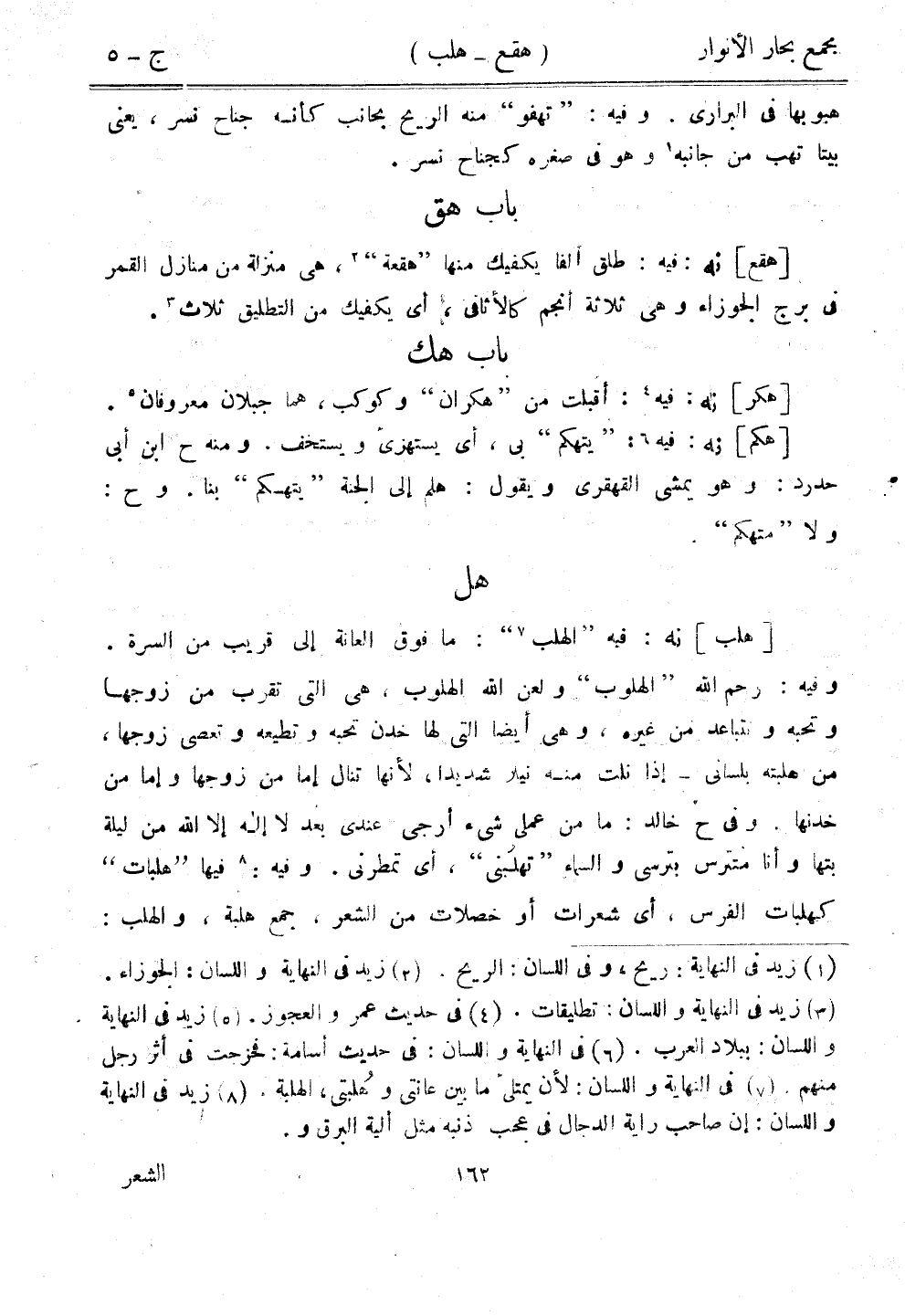 [هلب] نه: فيه "الهلب": ما فوق العانة إلى قريب من السرة. وفيه: رحم الله "الهلوب" ولعن الله الهلوب، هي التي تقرب من زوجها وتحبه وتتباعد من غيره، وهي أيضًا التي لها خدن تحبه وتطيعه وتعصي زوجها، من هلبته بلساني - إذا نلت منه نيار شديدًا، لأنها تنال إما من زوجها وإما من خدنها. وفي ح خالد: ما من عملي شيء أرجى عندي بعد لا إله إلا الله من ليلة بتها وأنا متترس بترسي والسماء "تهلبني"، أي تمطرني. وفيه: فيها "هلبات" كهلبات الفرس، أي شعرات أو خصلات من الشعر، جمع هلبة، والهلب: