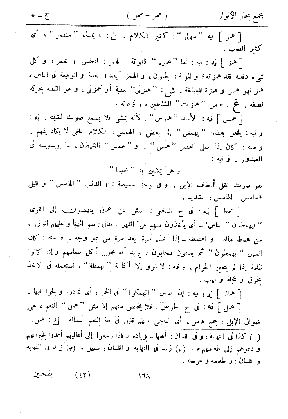 [همر] فيه "مهمار": كثير الكلام. ن: "بماء" منهمر"" أي كثير الصب.