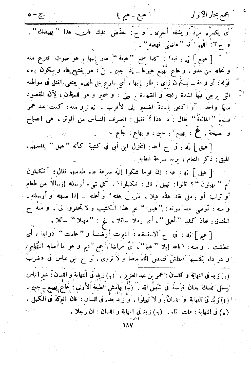 [هيع] نه: فيه: كلما سمع "هيعة" طار إليها، هو صوت تفزع منه وتخافه من عدو، وهاع يهيع هيوعا - إذا جبن. ن: هو بفتح هاء وسكون ياء، قوله: أو فزعة- بسكون زاي: طار إليها، أي سارع على ظهره يبتغي القتل في مواطنه التي يرجى فيها لشدة رغبته في الشهادة. ط: وضمير وهو للمظان، لأن المقصود منها واحد، أو اكتفى بإعادة الضمير إلى الأقرب. نه: ومنه: كنت عند عمر فسمع "الهائعة" فقال: ما هذا؟ فقيل: انصرف الناس من الوتر، هي الصياح والصيحة. غ: يهيع: جبن، ويهاع: جاع.