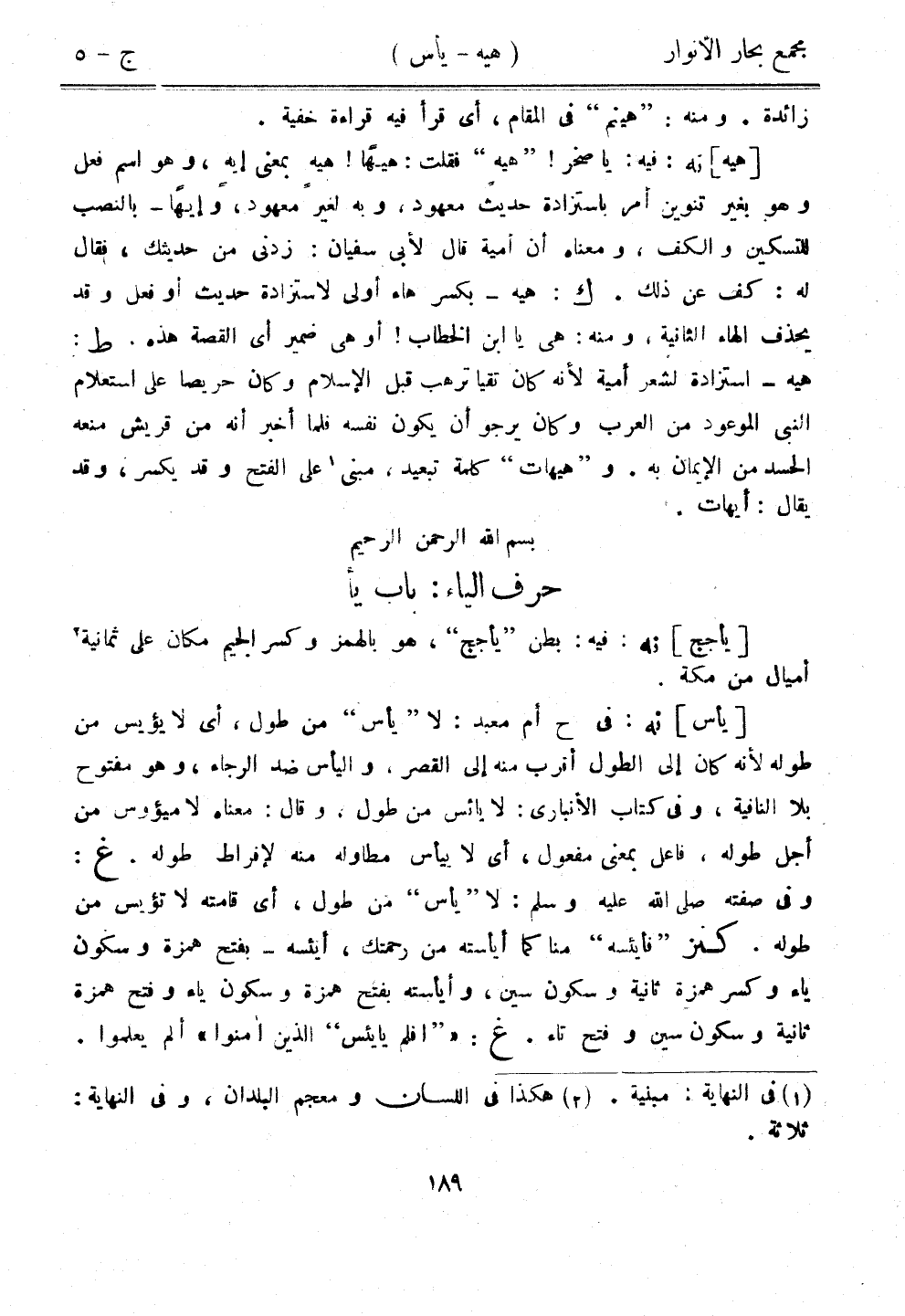 [يأس] نه: في ح أم معبد: لا "يأس" من طول، أي لا يؤيس من طوله لأنه كان على الطول أقرب منه إلى القصر، واليأس ضد الرجاء، وهو مفتوح بلا النافيةن وفي كتاب الأنباري: لا يائس من طول، وقال: معناه لا ميؤوس من أجل طوله، فاعل بمعنى مفعول، أي لا ييأس مطاوله منه لإفراط طوله. غ: وفي صفته صلى الله عليه وسلم: لا "يأس" من طول، أي قامته لا تؤيس من طوله. كنز "فأيئسه" منا كما أيأسته من رحمتك، أيئسه - بفتح همزة وسكون ياء وكسر همزة ثانية وسكون سين، وأيأسته بفتح همزة وسكون ياء وفتح همزة ثانية وسكون سين وفتح تاء. غ: ""أفلم يايئس" الذين آمنوا" ألم يعلموا.