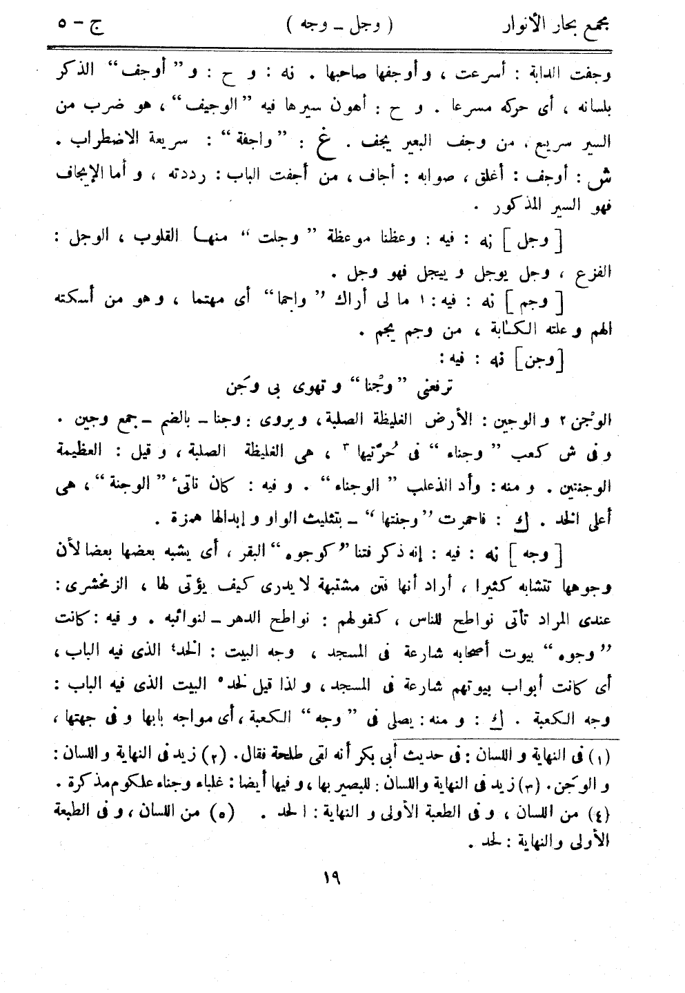 الوجن والوجين: الأرض الغليظة الصلبة، ويروى: وجنا - بالضم - جمع وجين. وفي ش كعب "وجناء" في حريتها، هي الغليظة الصلبة، وقيل: العظيمة الوجنتين. ومنه: وأد الذعلب "الوجناء". وفيه: كان ناتئ "الوجنة"، هي أعلى الخد. ك: فاحمرت "وجنتها" - بتثليث الواو وإبدالها همزة.