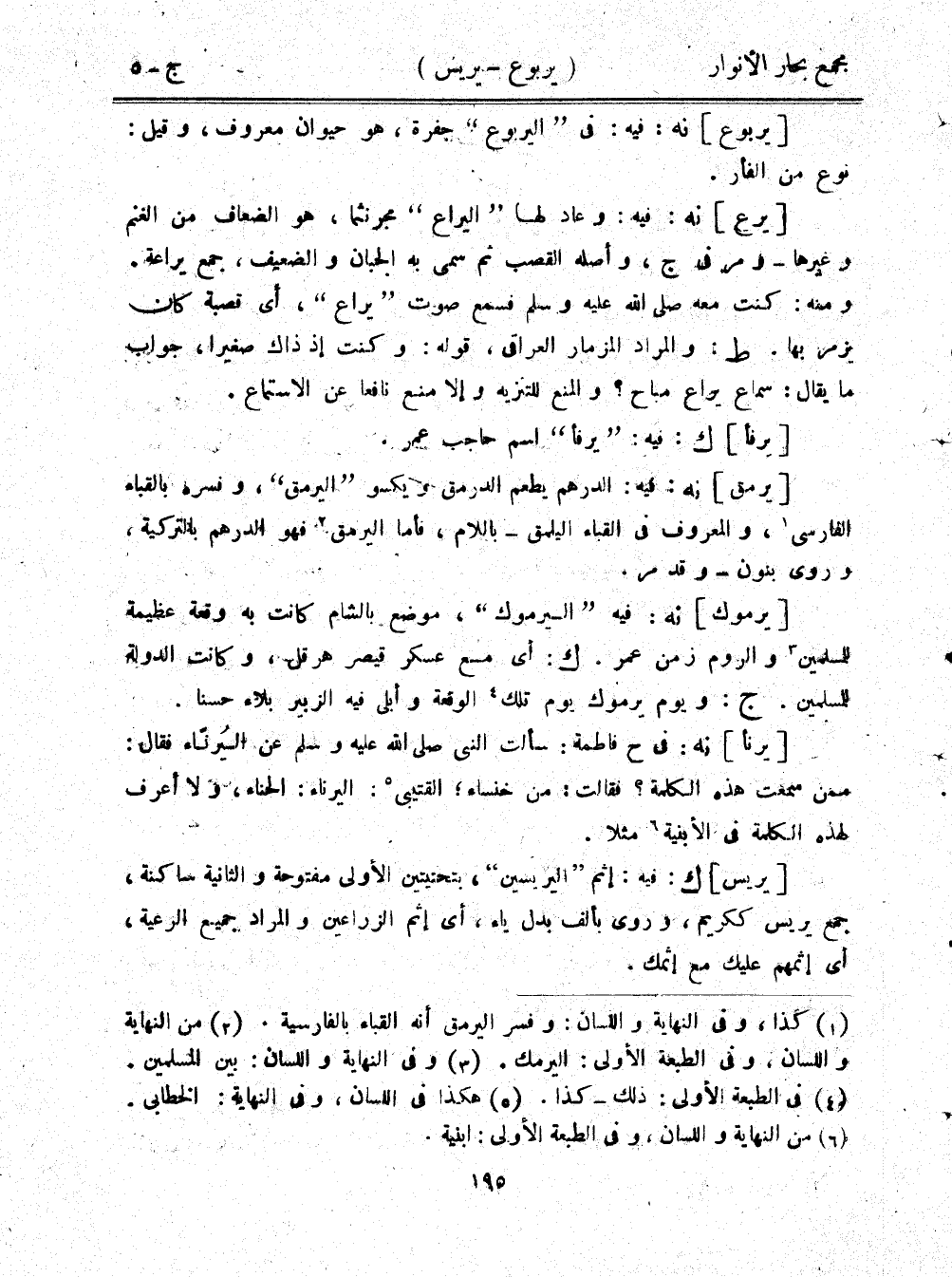 [يرنأ] نه: في ح فاطمة: سألت النبي صلى الله عليه وسلم عن اليُرناء فقال: ممن سمعت هذه الكلمة؟ فقالت: من خنساء، القتيبي: اليرناء: الحناء، ولا أعرف لهذه الكلمة في الأبنية مثلا.