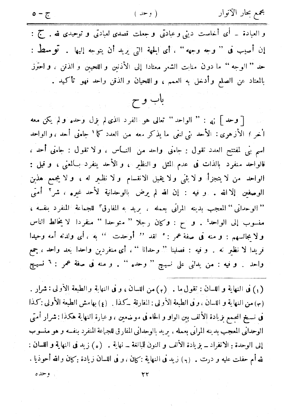 [وحد] نه: "الواحد" تعالى هو الفرد الذي لم يزل وحده ولم يكن معه آخر، الأزهري: الأحد بنى لنفي ما يذكر معه من العدد كما جاءني أحد، والواحد اسم بني لمفتتح العدد تقول: جاءني واحد من الناس، ولا تقول: جاءني أحد، فالواحد منفرد بالذات في عدم المثل والنظير، والأحد ينفرد بالمعنى، وقيل: الواحد من لا يتجزأ ولا يثني ولا يقبل الانقسام ولا نظير له، ولا يجمع هذين الوصفين إلا الله. وفيه: إن الله لم يرض بالوحدانية لأحد غيره، شر أمتي "الوحداني" المعجب بدينه المراتي بعمله، يريد به المفارق للجماعة المنفرد بنفسه، منسوب إلى الواحد. وح: وكان رجلًا "متوحدًا" منفردًا لا يخالط الناس ولا يجالسهم: ومنه في صفة عمر: لقد "أوحدت" به، أي ولدته أمه وحيدًا فريدًا لا نظير له. وفيه: فصلينا" وحدانا"، أي منفردين واحدًا بعد واحد، جمع واحد. وفيه: من يدلني على نسيج "وحده". ومنه في صفة عمر: نسيج