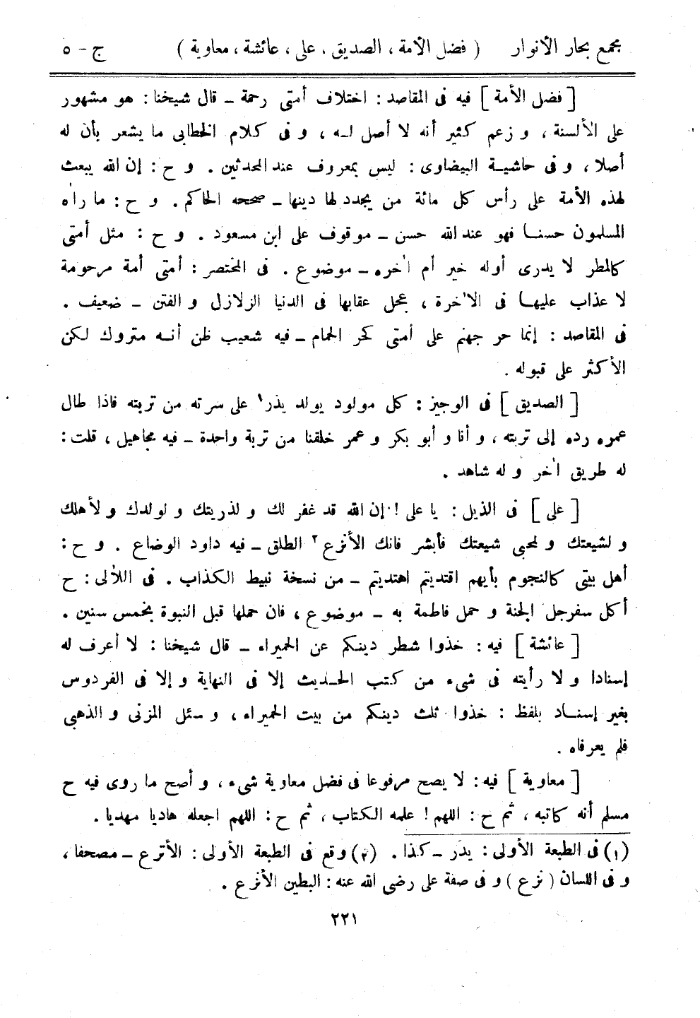 [فضل الأمة] فيه في المقاصد: اختلاف أمتي رحمة - قال شيخنا: هو مشهور على الألسنة، وزعم كثير أنه لا أصل له، وفي كلام الخطابي ما يشعر بأن له أصلًا، وفي حاشية البيضاوي: ليس بمعروف عند المحدثين. وح: إن الله يبعث لهذه الأمة على رأس كل مائة من يجدد لها دينها- صححه الحاكم. وح: ما رآه المسلمون حسنًا فهو عند الله حسن - موقوف على ابن مسعود. وح: مثل أمتي كالمطر لا يدري أوله خير أم آخره - موضوع. في المختصر: أمتي أمة مرحومة لا عذاب عليها في الآخرة، عجل عقابها في الدنيا الزلازل والفتن - ضعيف. في المقاصد: إنما حر جهنم على أمتي كحر الحمام - فيه شعيب ظن انه متروك لكن الأكثر على قبوله.