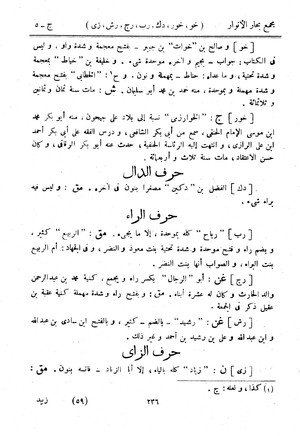 [رج] عن: أبو "الرجال" بكسر راء ويجمع، كنية محمد بن عبد الرحمن والد الحارث وكان له عشرة أبناء. مق: وبفتح راء وشدة مهملة كنية عقبة بن عقيل ذكر في الجمعة.