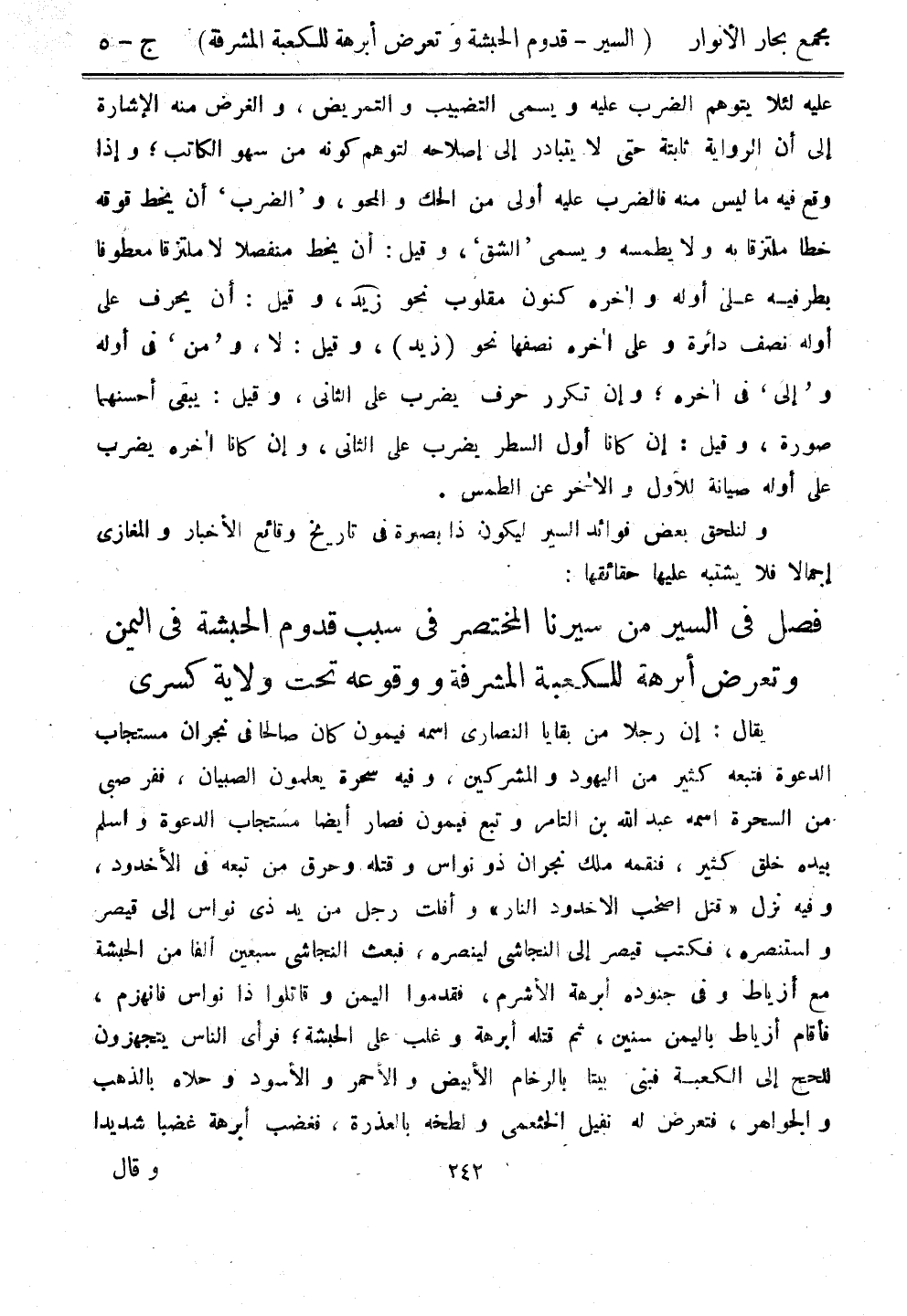 يقال: إن رجلًا من بقايا النصارى اسمه فيمون كان صالحًا في نجران مستجاب الدعوة فتبعه كثير من اليهود والمشركين، وفيه سحرة يعلمون الصبيان، ففر صبي من السحرة اسمه عبد الله بن التامر وتبع فيمون فصار أيضًا مستجاب الدعوة وأسلم بيده خلق كثير، فنقمه ملك نجران ذو نواس وقتله وحرق من تبعه في الأخدود، وفيه نزل "قتل أصحاب الأخدود النار" وأفلت رجل من يد ذي نواس إلى قيصر واستنصره، فكتب قيصر إلى النجاشي لينصره، فبعث النجاشي سبعين ألفًا من الحبشة مع أزياط وفي جنوده أبرهة الأشرم، فقدموا اليمن وقاتلوا ذا نواس فانهزم، فأقام أزياط باليمن سنين، ثم قتله أبرهة وغلب على الحبشة؛ فرأى الناس يتجهزون للحج إلى الكعبة فبنى بيتًا بالرخام الأبيض والأحمر والأسود وحلاه بالذهب والجواهر، فتعرض له نفيل الخثعمي ولطخه بالعذرةن فغضب أبرهة غضبًا شديدًا