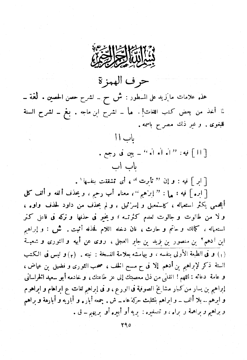 هذه علامات ما زيد على المسطور: ش ح- لشرح حصن الحصين. لغة - لما أخذ من بعض كتب اللغات. ما - لشرح ابن ماجه. بغ - لشرح السنة للبغوي. وغير ذلك مصرح باسمه.