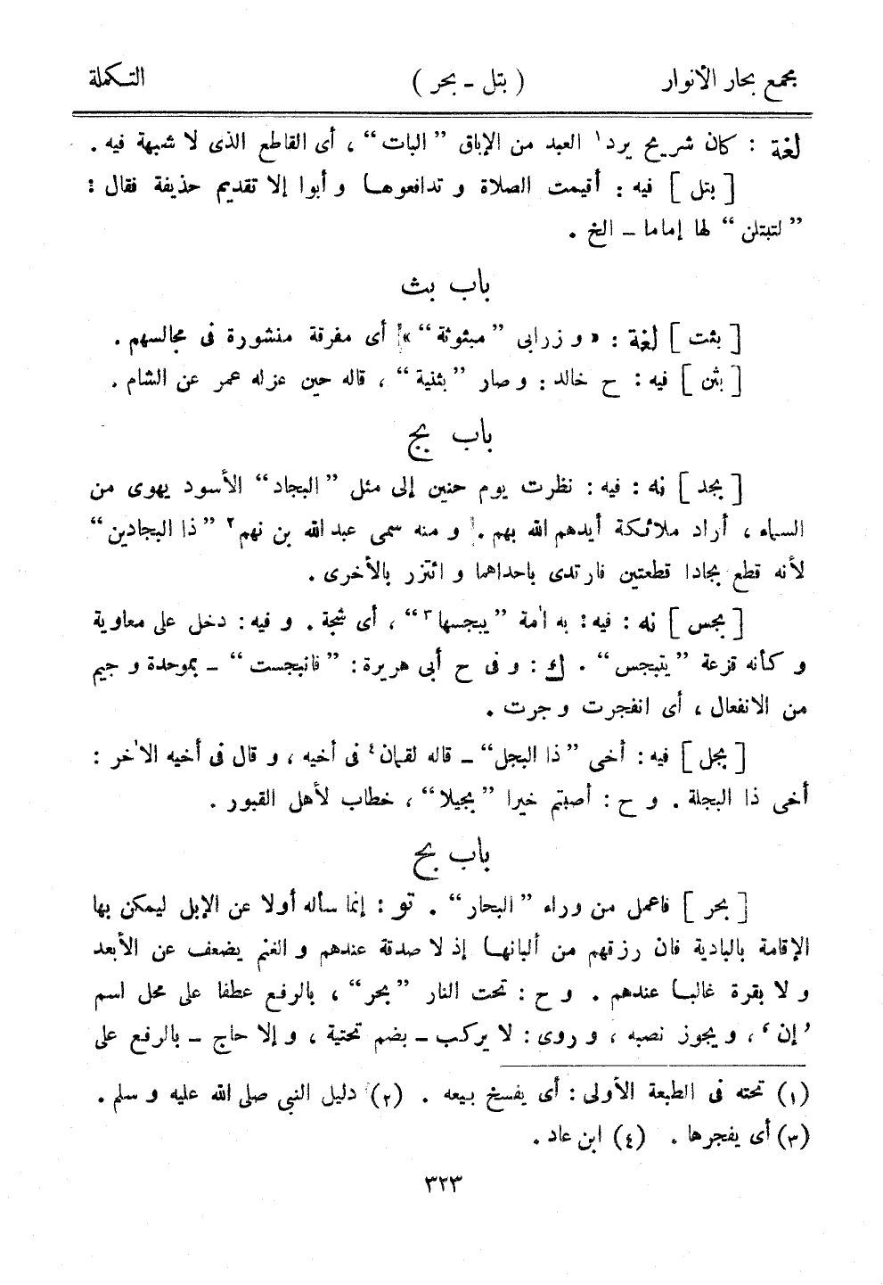 [بجل] فيه: أخي "ذا البجل"- قاله لقمان في أخيه، وقال في أخيه الآخر: أخي ذا البجلة. وح: أصبتم خيرًا "بجيلا"، خطاب لأهل القبور.