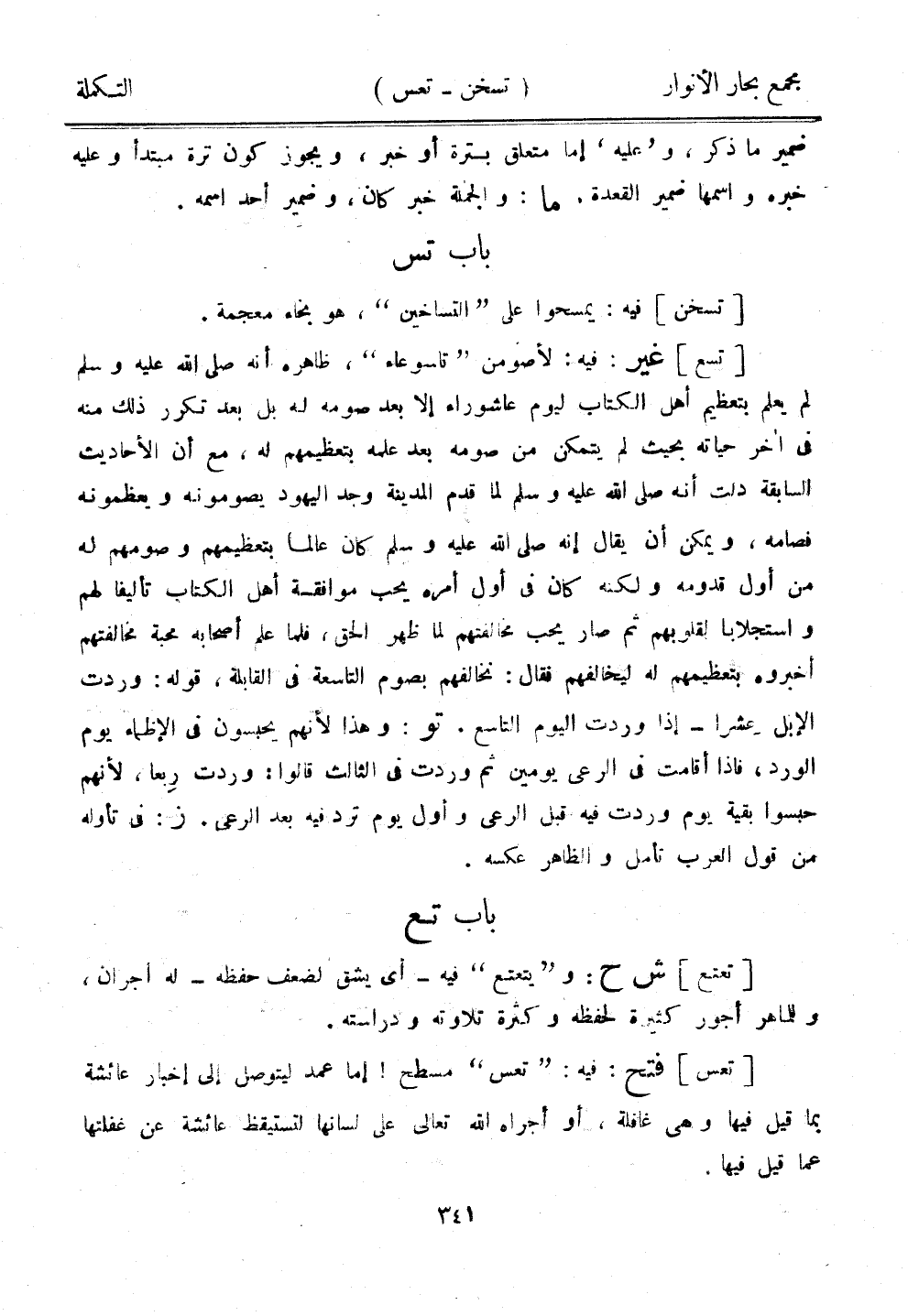 [تسع] غير: فيه: لأصومن "تاسوعاء"، ظاهره أنه صلى الله عليه وسلم لم يعلم بتعظيم أهل الكتاب ليوم عاشوراء إلا بعد صومه له بل بعد تكرر ذلك منه في آخر حياته بحيث لم يتمكن من صومه بعد علمه بتعظيمهم له، مع أن الأحاديث السابقة دلت أنه صلى الله عليه وسلم لما قدم المدينة وجد اليهود يصومونه ويعظمونه فصامه، ويمكن أن يقال إنه صلى الله عليه وسلم كان عالمًا بتعظيمهم وصومهم له من أول قدومه ولكنه كان في أول أمره يحب موافقة أهل الكتاب تأليفًا لهم واستجلابًا لقلوبهم ثم صار يحب مخالفتهم لما ظهر الحق، لما علم أصحابه محبة مخالفتهم أخبروه بتعظيمهم له ليخالفهم فقال: نخالفهم بصوم التاسعة في القابلة، قوله: وردت الإبل عشرا - إذا وردت اليوم التاسع. تو: وهذا لأنهم يحبسون في الإظماء يوم الورد، فإذا أقامت في الرعي يومين ثم وردت في الثالث قالوا: وردت ربعا، لأنهم حبسوا بقية يوم وردت فيه قبل الرعي وأول يوم ترد فيه بعد الرعي. ز: في تأوله من قول العرب تأمل والظاهر عكسه.