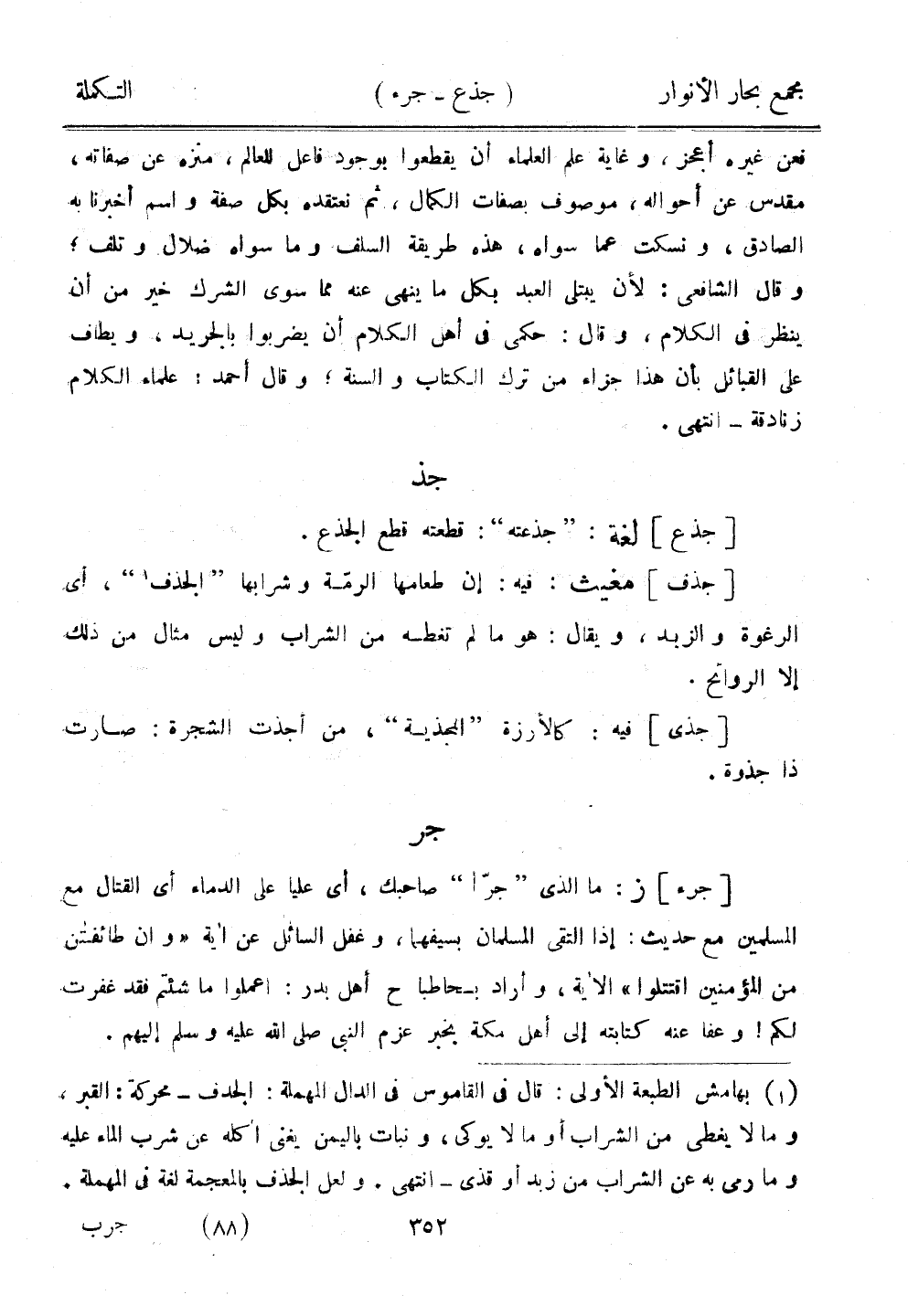 [جرء] ز: ما الذي "جرا" صاحبك، أي عليًا على الدماء أي القتال مع المسلمين مع حديث: إذا التقى المسلمان بسيفهما، وغفل السائل عن آية "وإن طائفتين من المؤمنين اقتتلوا" الآية، وأراد بحاطبا ح أهل بدر: اعملوا ما شئتم فقد غفرت لكم! وعفا عنه كتابته إلى أهل مكة بخبر عزم النبي صلى الله عليه وسلم إليهم.