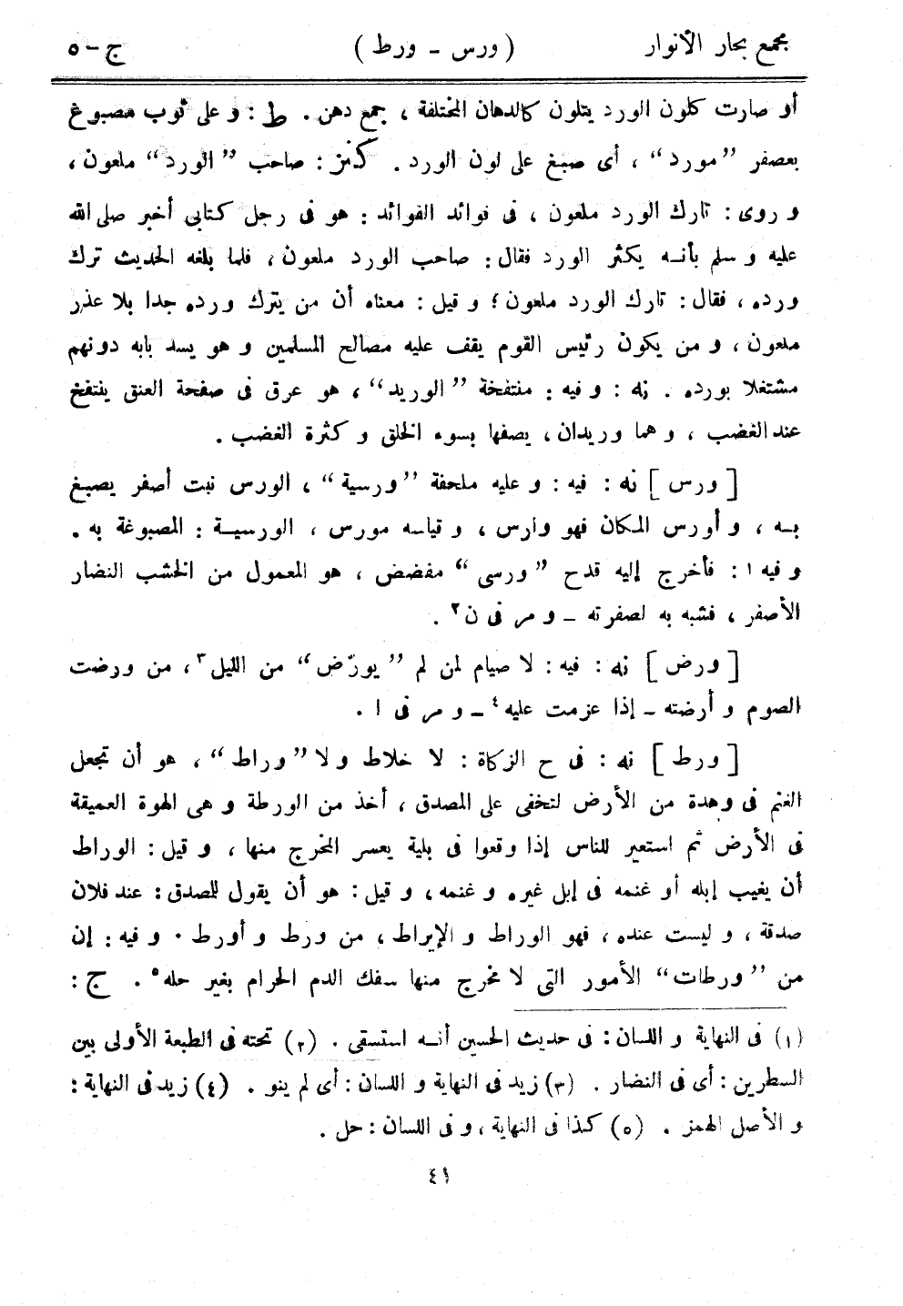 أو صارت كلون الورد يتلون كالدهان المختلفة، جمع دهن. ط: وعلى ثوب مصبوغ بعصفر "مورد"، أي صبغ على لون الورد. كنز: صاحب "الورد" ملعون، وروي: تارك الورد ملعون، في فوائد الفوائد: هو في رجل كتابي أخبر صلى الله عليه وسلم بأنه يكثر الورد فقال: صاحب الورد ملعون، فلما بلغه الحديث ترك ورده، فقال: تارك الورد ملعون، وقيل: معناه أن من يترك ورده جدًا بلا عذر ملعون، ومن يكون رئيس القوم يقف عليه مصالح المسلمين وهو يسد بابه دونهم مشتغلًا بورده. نه: وفيه: منتفخة "الوريد"، هو عرق في صفحة العنق ينتفخ عند الغضب، وهما وريدان، يفها بسوء الخلق وكثرة الغضب.