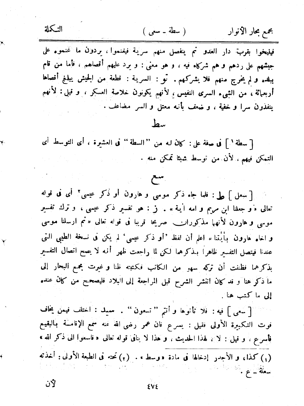 [سعل] ط: فلما جاء ذكر موسى وهارون أو ذكر عيسى أي في قوله تعالى "وجعلنا ابن مريم وأمه آية". ز: هو تفسير ذكر عيسى، وترك تفسير موسى وهارون لأنهما مذكوران صريحًا قريبًا في قوله تعالى "ثم أرسلنا موسى وأخاه هارون بآياتنا" اعلم أن لفظ "أو ذكر عيسى" لم يكن في نسخة الطيبي التي عندنا فيتصل التفسير ظاهرًا بذكرهما لكن لما راجعت ظهر أنه لا يصح اتصال التفسير بذكرهما فظننت أن تركه سهو من الكاتب فكتبته ظنا وغيرت مجمع البحار إلى ما ذكر هنا وقد كان انتشر الشرح قبل المراجعة إلى البلاد فليصحح من كان عنده على ما كتب هنا.