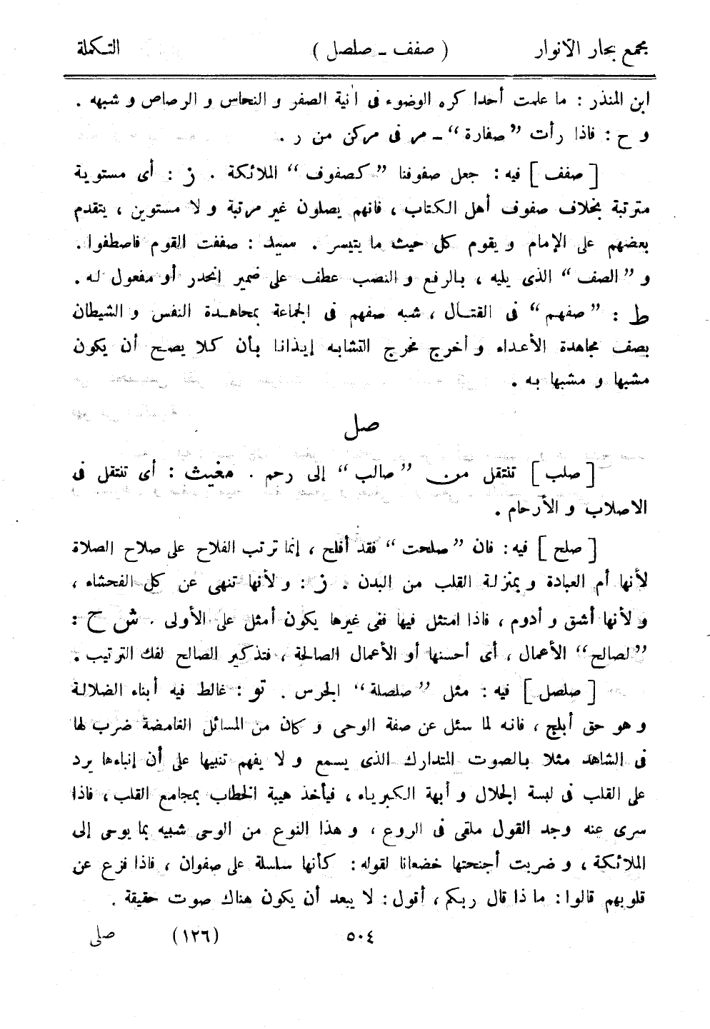[صفف] فيه: جعل صفوفنا "كصفوف" الملائكة. ز: أي مستوية مترتبة بخلاف صفوف أهل الكتاب، فإنهم يصلون غير مرتبة ولا مستوين، يتقدم بعضهم على الإمام ويقوم كل حيث ما يتيسر. سيد: صففت القوم فاصطفوا. و"الصف" الذي يليه، بالرفع والنصب عطف على ضمير انحدر أو مفعول له. ط: "صفهم" في القتال، شبه صفهم في الجماعة بمجاهدة النفس والشيطان بصف مجاهدة الأعداء وأخرج مخرج التشابه إيذانًا بأن كلا يصح أن يكون مشبهًا ومشبهًا به.