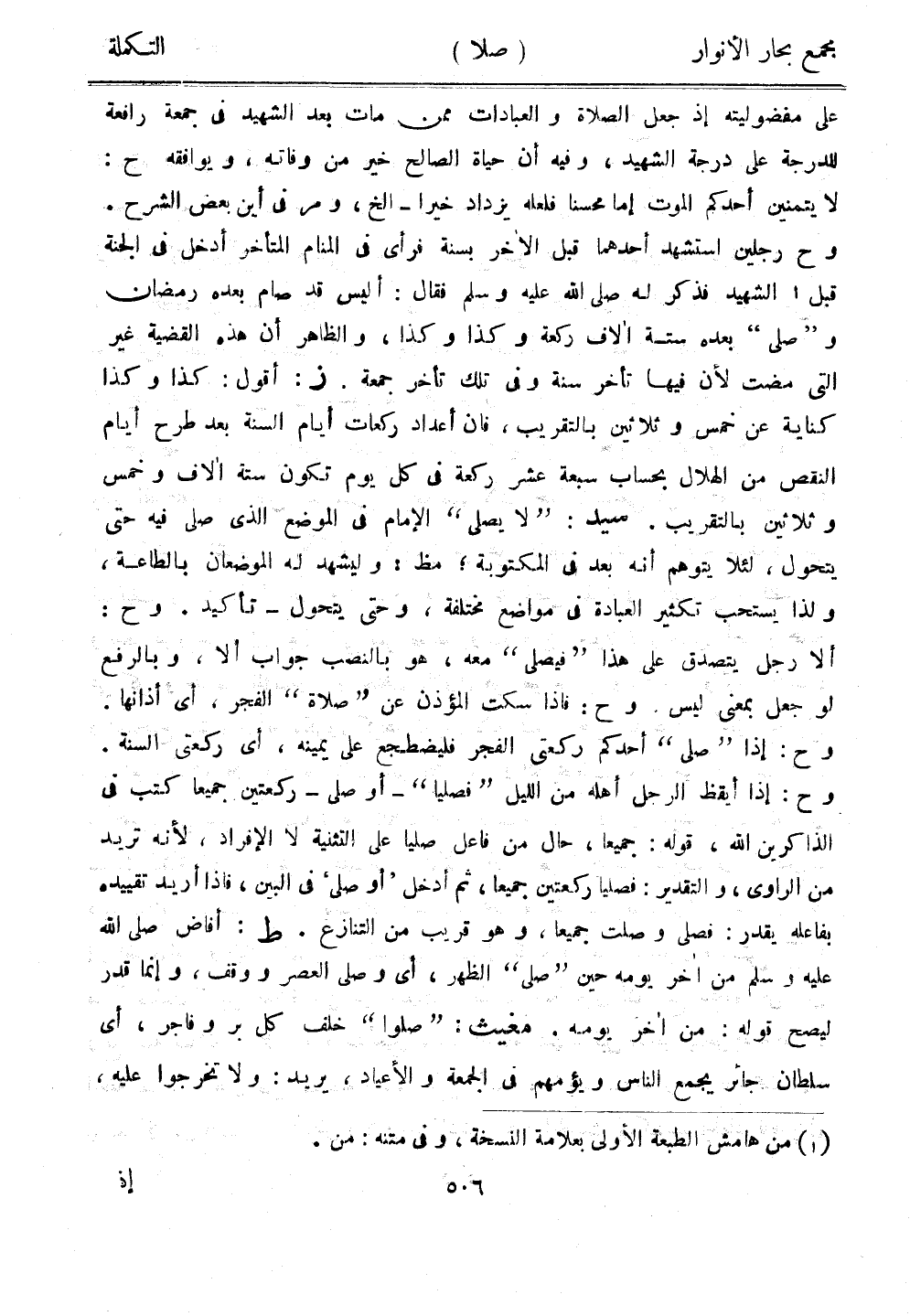على مفضوليته إذ جعل الصلاة والعبادات ممن مات بعد الشهيد في جمعة رافعة للدرجة على درجة الشهيد، وفيه أن حياة الصالح خير من وفاته، ويوافقه ح: لا يتمنين أحدكم الموت إما محسنًا فلعله يزداد خيرًا-إلخ، ومر في أين بعض الشرح. وح رجلين استشهد أحدهما قبل الآخر بسنة فرأى في المنام المتأخر أدخل في الجنة قبل الشهيد فذكر له صلى الله عليه وسلم فقال: أليس قد صام بعده رمضان و"صلى" بعده ستة آلاف ركعة وكذا وكذا، والظاهر أن هذه القضية غير التي مضت لأن فيها تأخر سنة وفي تلك تأخر جمعة. ز: أقول: كذا وكذا كناية عن خمس وثلاثين بالتقريب، فإن أعداد ركعات أيام السنة بعد طرح أيام النقص من الهلال بحساب سبعة عشر ركعة في كل يوم تكون ستة آلاف وخمس وثلاثين بالتقريب. سيد: "لا يصلي" الإمام في الموضع الذي صلى فيه حتى يتحول، لئلا يتوهم أنه بعد في المكتوبة، مظ: وليشهد له الموضعان بالطاعة، ولذا يستحب تكثير العبادة في مواضع مختلفة، وحتى يتحول- تأكيد. وح: ألا رجل يتصدق على هذا "فيصلي" معه، هو بالنصب جواب ألا، وبالرفع لو جعل بمعنى ليس. وح: فإذا سكت المؤذن عن "صلاة" الفجر، أي أذانها. وح: إذا "صلى" أحدكم ركعتي الفجر فليضطجع على يمينه، أي ركعتي السنة. وح: إذا أيقظ الرجل أهله من الليل "فصليا" - أو صلى - ركعتين جميعًا كتب في الذاكرين الله، قوله: جميعًا، حال من فاعل صليا على التثنية لا الإفراد، لأنه تريد من الراوي، والتقدير: فصليا ركعتين جميعًا، ثم أدخل "أو صلى" في البين، فإذا أريد تقييده بفاعله يقدر: فصلى وصلت جميعًا، وهو قريب من التنازع. ط: أفاض صلى الله عليه وسلم من أخر يومه حين "صلى" الظهر، أي وصلى العصر ووقف، وإنما قدر ليصح قوله: من أخر يومه. مغيث: "صلوا" خلف كل بر وفاجر، أي سلطان جائر يجمع الناس ويؤمهم في الجمعة والأعياد، يريد: ولا تخرجوا عليه،