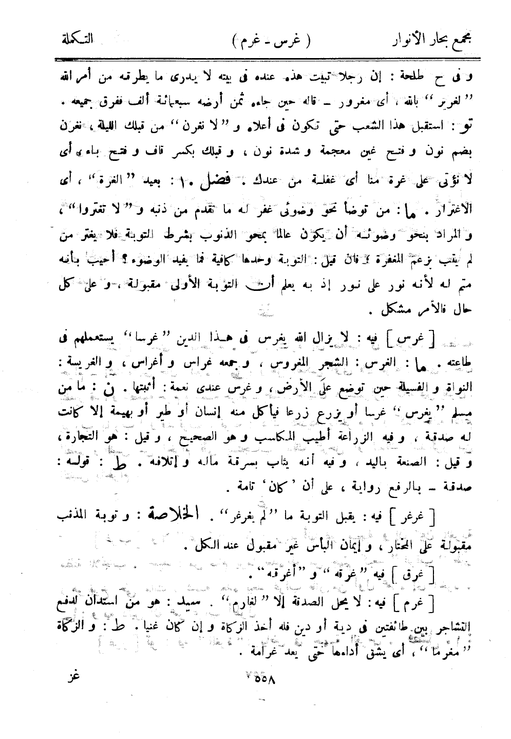 [غرم] فيه: لا يحل الصدقة إلا "لغارم". سيد: هو من استدان لدفع التشاجر بين طائفتين في دية أو دين فله أخذ الزكاة وإن كان غنيًا. ط: والزكاة "مغرما"، أي يشق أداءها حتى يعد غرامة.