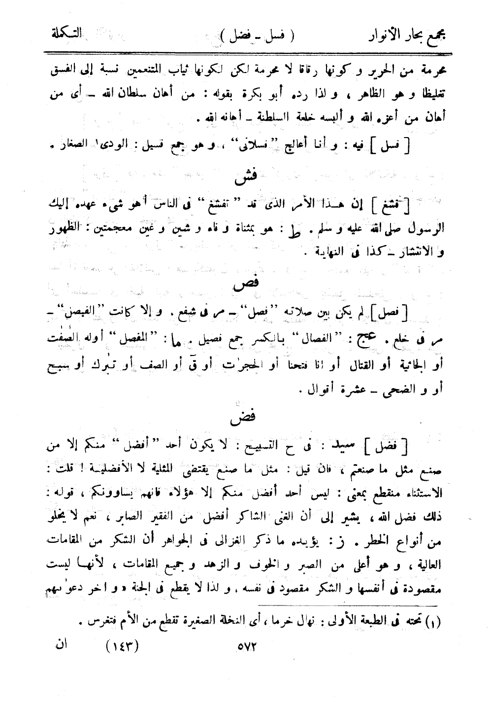 [فشغ] إن هذا الأمر الذي قد "تفشغ" في الناس أهو شيء عهده إليك الرسول صلى الله عليه وسلم. ط: هو بمثناة وفاء وشين وغين معجمتين: الظهور والانتشار-كذا في النهاية.