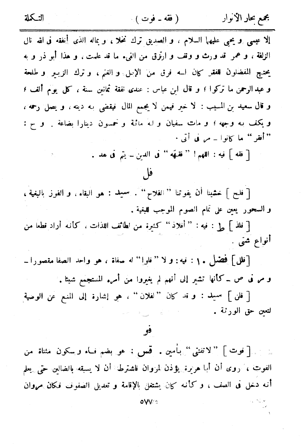[فلل] فضل 10: فيه: ولا "فلوا" له صفاة، هو واحد الصفا مقصورًا- ومر في ص - كأنها تشير إلى أنهم لم يغيروا من أمره المستجمع شيئًا.