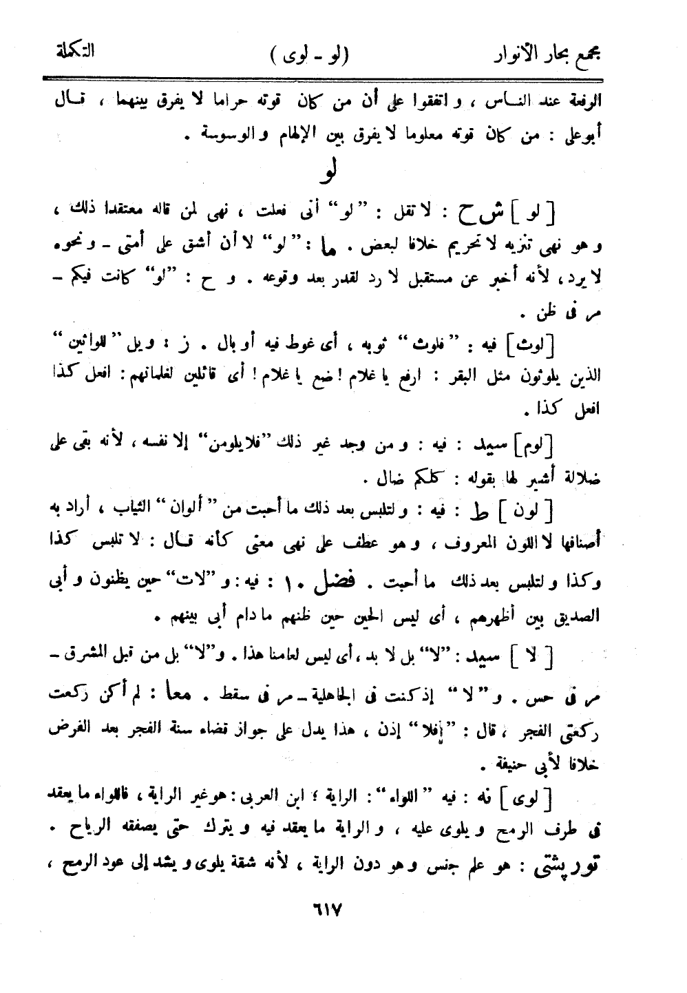 [لو] ش ح: لا تقل:"لو" أني فعلت، نهى لمن قاله معتقدًا ذلك، وهو نهي تنزيه لا تحريم خلافًا لبعض. ما: "لو" لا أن أشق على أمتي - ونحوه لا يرد، لأنه أخبر عن مستقبل لا رد لقدر بعد وقوعه. وح: "لو" كانت فيكم - مر في ظن