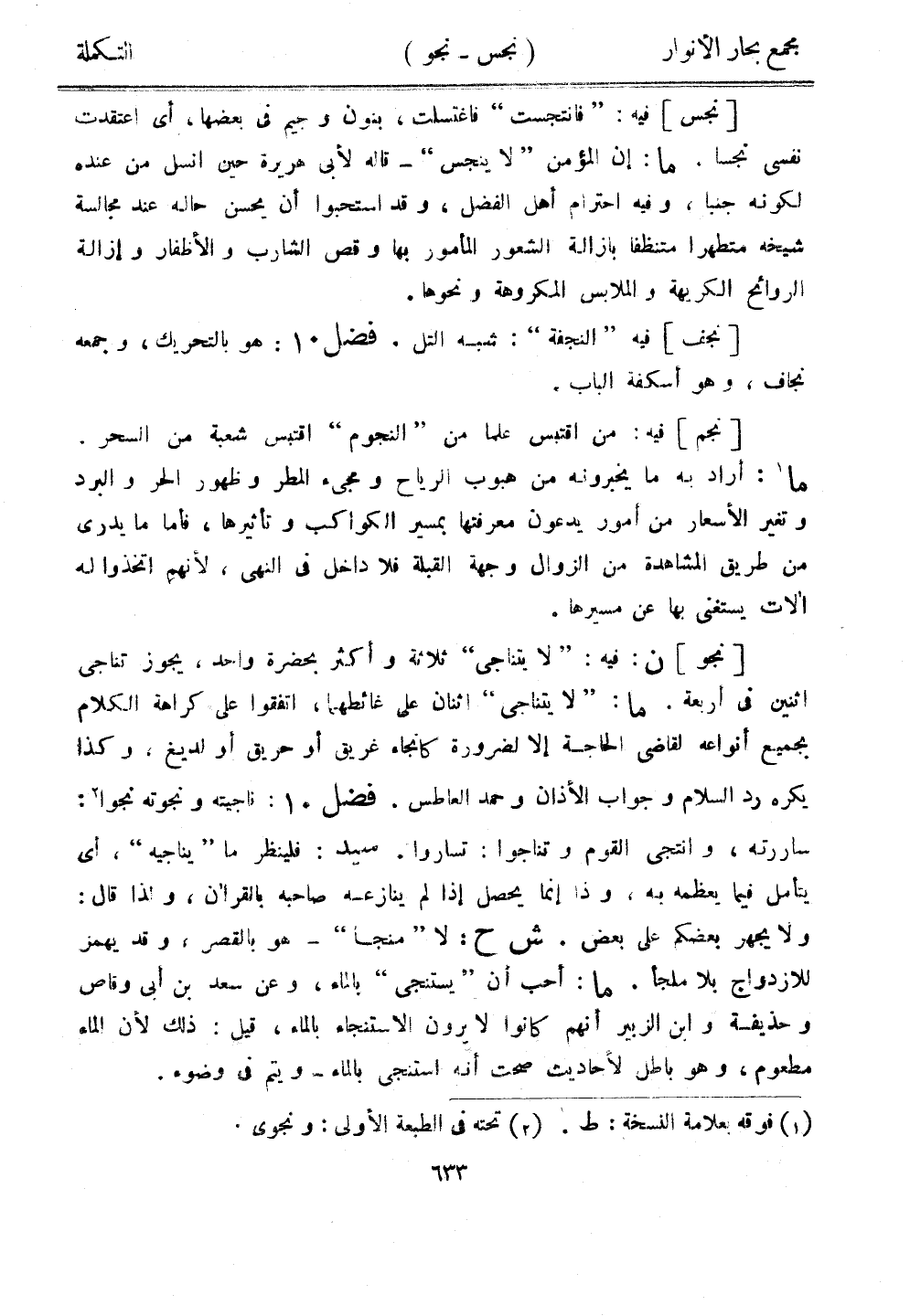 [نجس] فيه: "فانتجست" فاغتسلت، بنون وجيم في بعضها، أي اعتقدت نفسي نجسًا. ما: إن المؤمن "لا ينجس" - قاله لأبي هريرة حين انسل من عنده لكونه جنبًا، وفيه احترام أهل الفضل، وقد استحبوا أن يحسن حاله عند مجالسة شيخه متطهرًا متنظفًا بإزالة الشعور المأمور بها وقص الشارب والأظفار وإزالة الروائح الكريهة والملابس المكروهة ونحوها.
