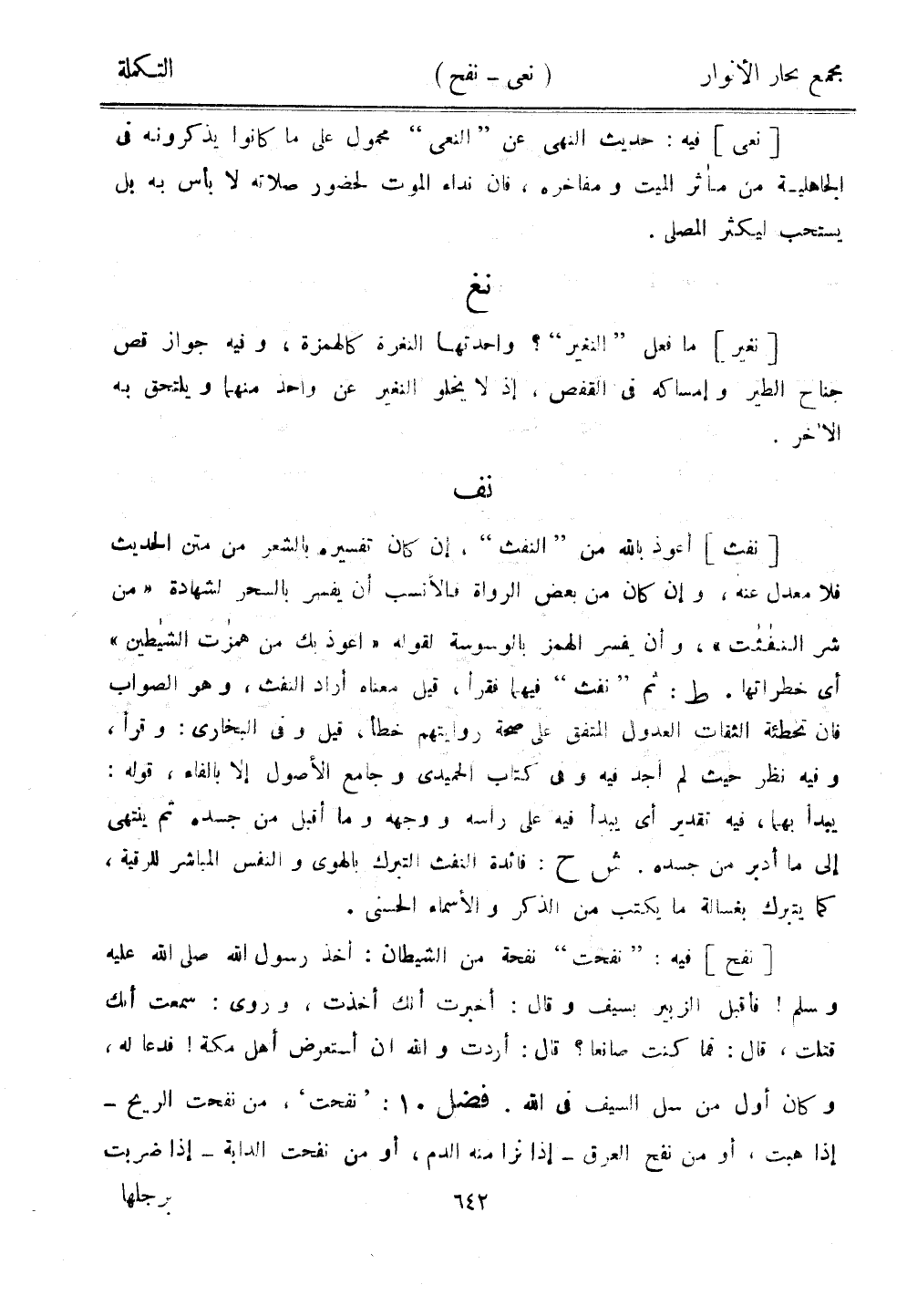 [نفح] فيه: "نفحت" نفحة من الشيطان: أخذ رسول الله صلى الله عليه وسلم! فأقبل الزبير بسيف وقال: أخبرت أنك أخذت، وروي: سمعت أنك قتلت، قال: فما كنت صانعًا؟ قال: أردت والله أن أستعرض أهل مكة! فدعا له، وكان أول من سل السيف في الله. فضل 10: "نفحت"، من نفحت الريح- إذا هبت، أومن نفح العرق - إذا نزا منه الدم، أو من نفحت الدابة - إذا ضربت