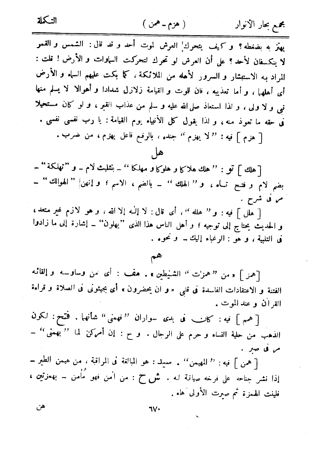 [همز] "من "همزات" الشياطين". مف: أي من وساوسه وإلقائه الفتنة والاعتقادات الفاسدة في قلبي "وأن يحضرون" أي يجيئوني في الصلاة وقراءة القرآن وعند الموت.