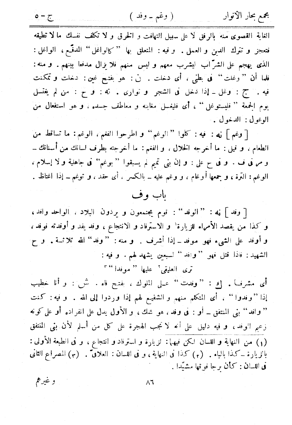 الغاية القصوى منه بالرفق لا على سبيل التهافت الخرق ولا تكلف نفسك ما لا تطيقه فتعجز وتترك الدين والعمل. وفيه: المتعلق بها "كالواغل"المدفع، الواغل: الذي يهجم على الشراب ليشرب معهم وليس منهم فلا يزال مدفعًا بينهم. ومنه: فلما أن "وغلت" في بطني، أي دخلت. ن: هو بفتح غين: دخلت وتمكنت فيه. ج: وغل- إذا دخل في الشجر وتوارى. نه: و: من لم يغتسل يوم الجمعة "فليستوغل"ن أي فليغسل مغابنه ومعاطف جسده، وهو استفعال من الوغول: الدخول.