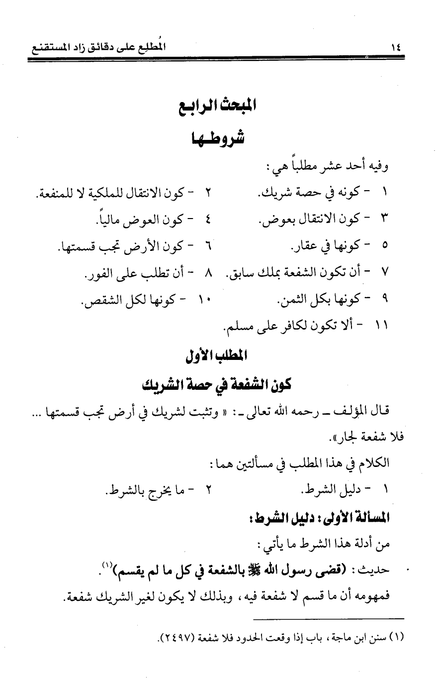 (¬1) سنن ابن ماجة، باب إذا وقعت الحدود فلا شفعة (2497).