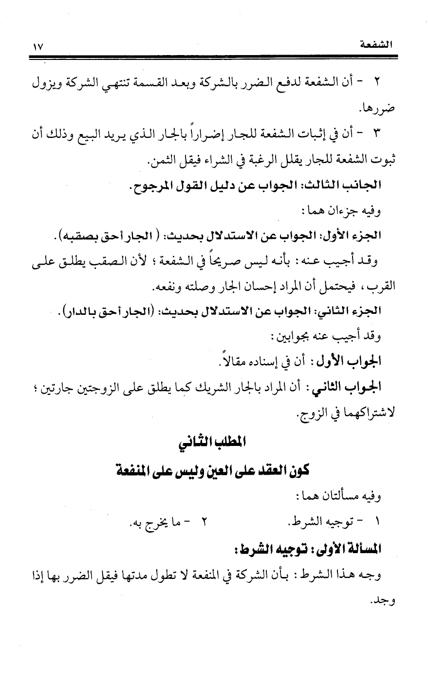 الجزء الأول: الجواب عن الاستدلال بحديث: (الجار أحق بصقبه).