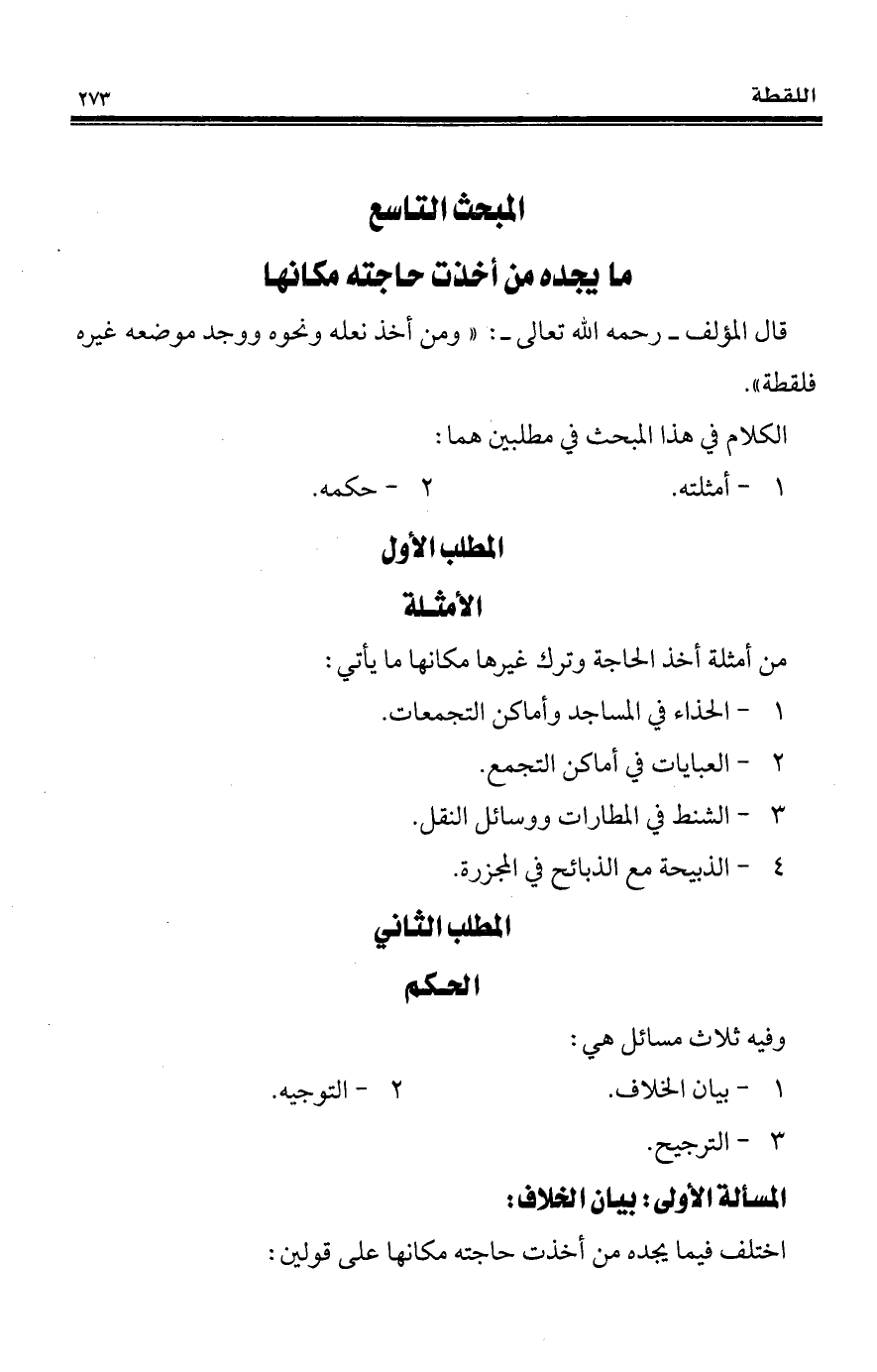 المبحث التاسع ما يجده من أخذت حاجته مكانها