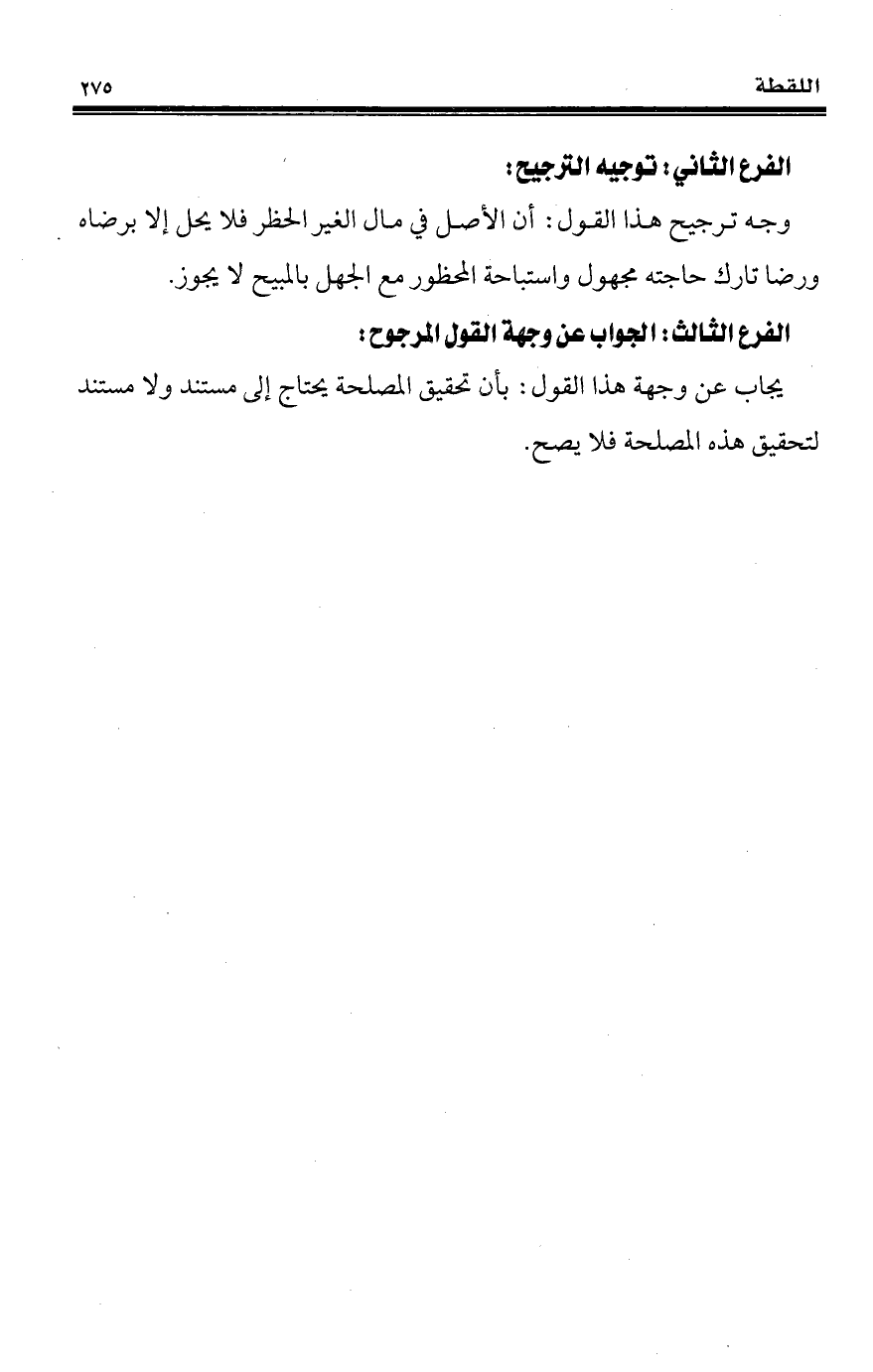 وجه ترجيح هذا القول: أن الأصل في مال الغير الحظر فلا يحل إلا برضاه ورضا تارك حاجته مجهول واستباحة المحظور مع الجهل بالمبيح لا يجوز.