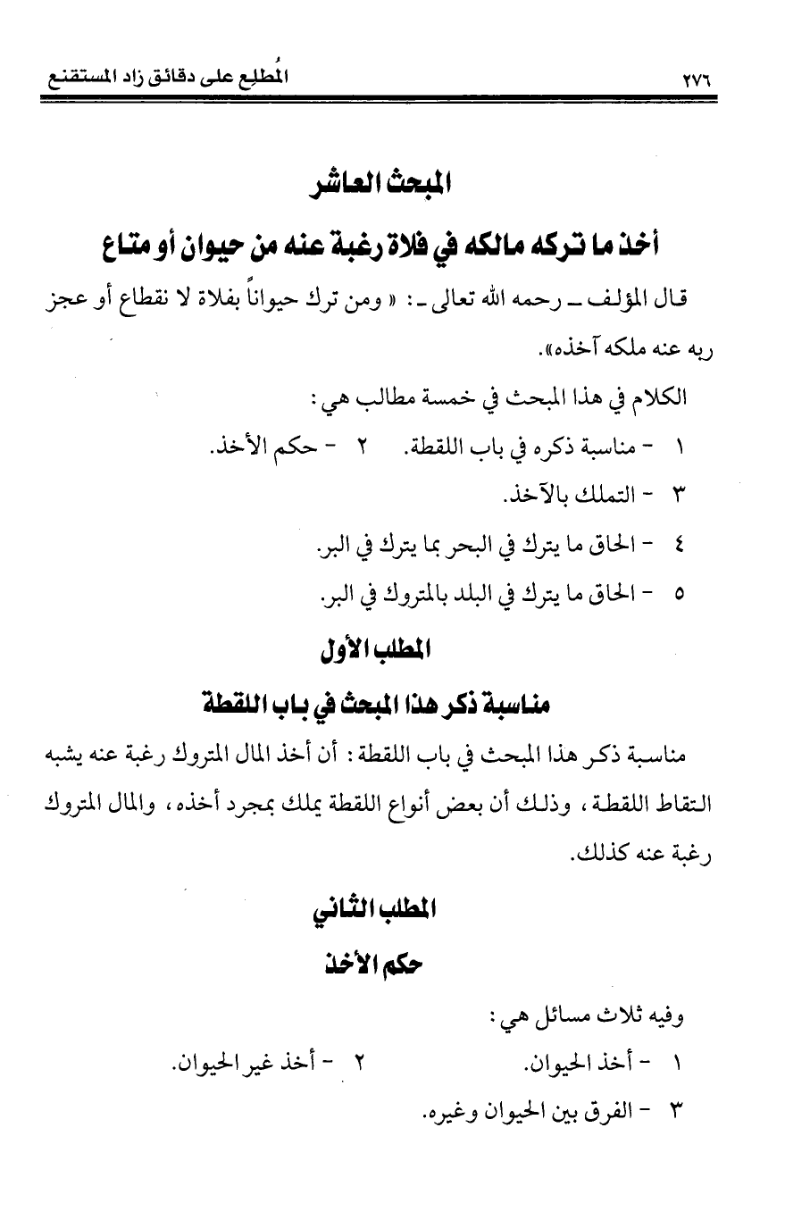 المبحث العاشر أخذ ما تركه ماله في فلاة رغبة عنه من حيوان أو متاع