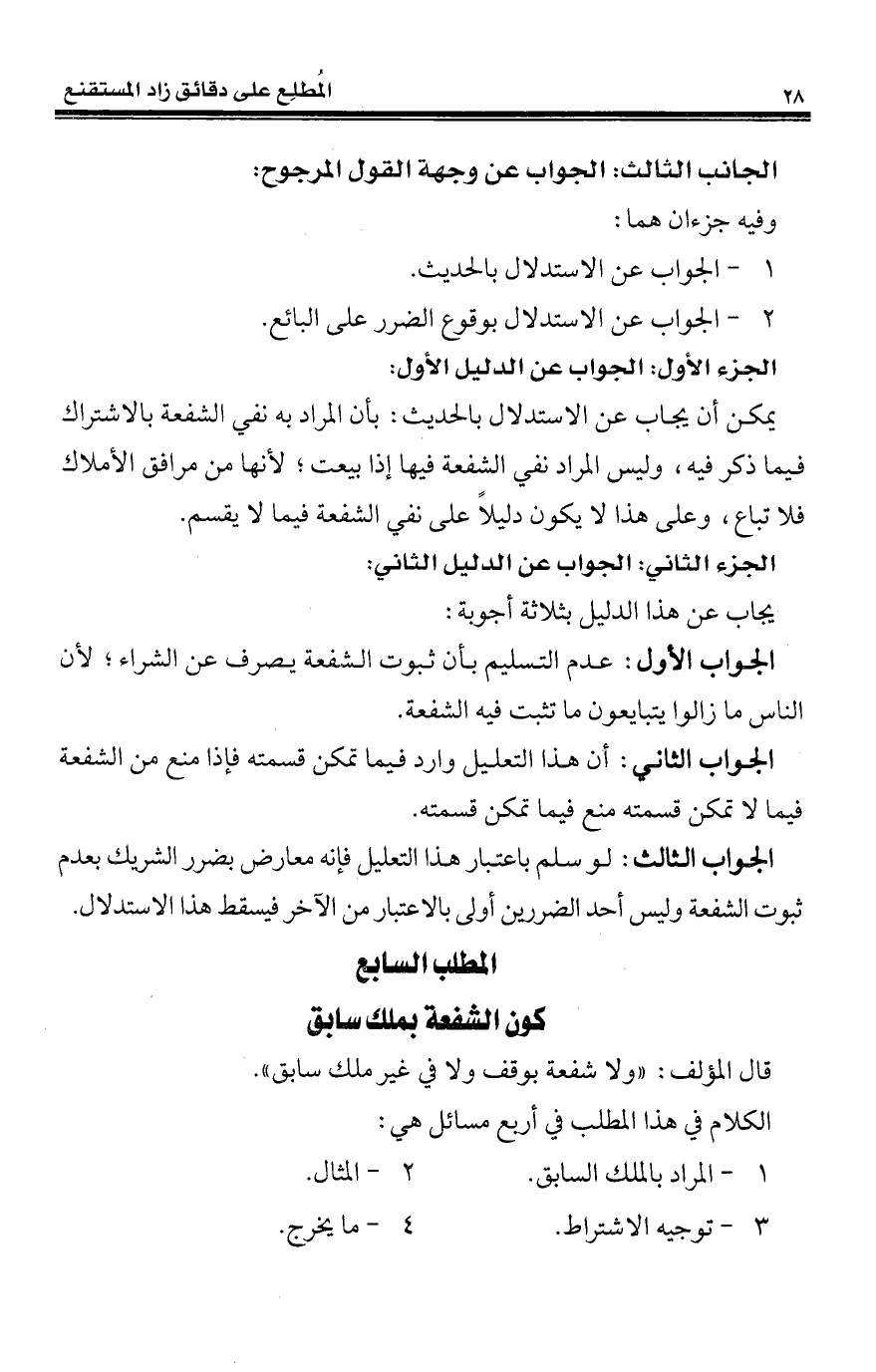 المطلب السابع كون الشفعة بملك سابق
