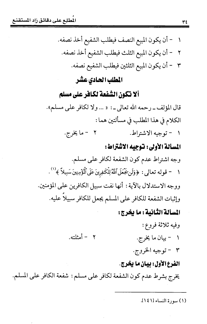 المطلب الحادي عشر ألا تكون الشفعة لكافر على مسلم