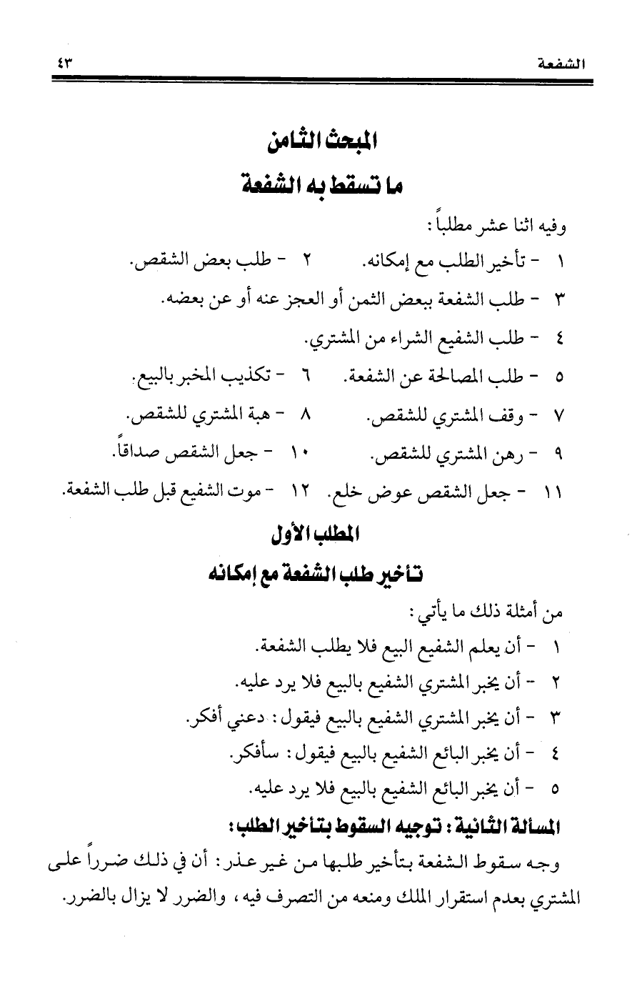 المطلب الأول تأخير طلب الشفعة مع إمكانه